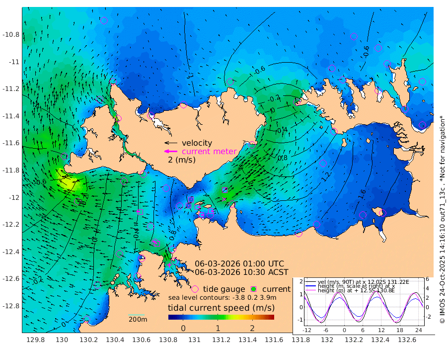 37cm/s 82T +4cm/s rms + 6cm/s 51T. Darwin_C1 52m 35cm/s 87T +4cm/s rms + 7cm/s -161T. Darwin_CW1 22m 13cm/s 70T +4cm/s rms + 8cm/s 61T. Darwin_CW2 34m 41cm/s 40T +3cm/s rms + 9cm/s 98T. Darwin_CW3 22m 46cm/s 92T +5cm/s rms + 7cm/s 88T. Darwin_C3 56m 13cm/s 70T +2cm/s rms + 9cm/s -126T. Darwin_CTbW 22m 59cm/s -83T +1cm/s rms + 1cm/s -47T. DARBGF 30m 74cm/s -53T +4cm/s rms + 3cm/s 80T. NRSDAR 19m -88cm Goodrich Bank -9cm Point Jenny -15cm Native Point 6cm Fish Reef 10cm Tapa Bay -66cm Point Fawcett (Offshore) 31cm Burge Point -6cm Munkunuwa -34cm Beagle A 41cm Parsons Bank 19cm Fenton Patches 58cm Hancox Shoal Area 42cm Nightcliff 62cm Darwin 28cm Charles Point Patches 100cm Glyde Point 173cm Chambers Bay 200cm Point Stuart 124cm Cape Hotham 155cm Christine Reef 228cm West Alligator Head 259cm East Field Island 137cm Two Hills Bay 120cm Camp Point 10cm Medina Inlet South -80cm South Barlow Point -89cm St. Asaph Bay -93cm Cape Van Dieman -90cm Snake Bay -77cm Cache Point -50cm Point Jahleel (Off) 10cm Cape Don -40cm Port Essington -43cm Smith Point - West -38cm NW Peacock Island -52cm North Of Jones Shoal -16cm Peacock Island -1cm Point David -38cm D'urville Point 7cm Copeland Island -3cm One Tree Point