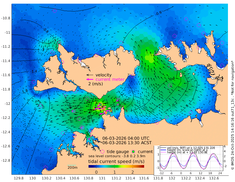 188cm/s -102T +4cm/s rms + 6cm/s 51T. Darwin_C1 52m 145cm/s -89T +4cm/s rms + 7cm/s -161T. Darwin_CW1 22m 131cm/s -107T +4cm/s rms + 8cm/s 61T. Darwin_CW2 34m 79cm/s -130T +3cm/s rms + 9cm/s 98T. Darwin_CW3 22m 185cm/s -91T +5cm/s rms + 7cm/s 88T. Darwin_C3 56m 103cm/s -115T +2cm/s rms + 9cm/s -126T. Darwin_CTbW 22m 63cm/s -94T +1cm/s rms + 1cm/s -47T. DARBGF 30m 54cm/s -68T +4cm/s rms + 3cm/s 80T. NRSDAR 19m -19cm Goodrich Bank -209cm Point Jenny -210cm Native Point -227cm Fish Reef -240cm Tapa Bay -126cm Point Fawcett (Offshore) -246cm Burge Point -244cm Munkunuwa -178cm Beagle A -251cm Parsons Bank -231cm Fenton Patches -234cm Hancox Shoal Area -246cm Nightcliff -271cm Darwin -253cm Charles Point Patches -160cm Glyde Point -75cm Chambers Bay -57cm Point Stuart -117cm Cape Hotham -58cm Christine Reef -53cm West Alligator Head -13cm East Field Island -74cm Two Hills Bay -76cm Camp Point -242cm Medina Inlet South -114cm South Barlow Point -76cm St. Asaph Bay -28cm Cape Van Dieman -38cm Snake Bay -23cm Cache Point -36cm Point Jahleel (Off) -72cm Cape Don -49cm Port Essington -47cm Smith Point - West -40cm NW Peacock Island -26cm North Of Jones Shoal -11cm Peacock Island -57cm Point David -49cm D'urville Point -56cm Copeland Island -54cm One Tree Point