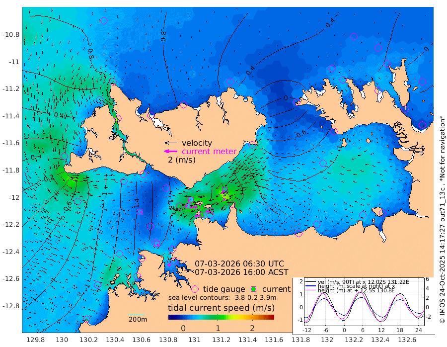 107cm/s -100T +4cm/s rms + 6cm/s 51T. Darwin_C1 52m 83cm/s -92T +4cm/s rms + 7cm/s -161T. Darwin_CW1 22m 58cm/s -106T +4cm/s rms + 8cm/s 61T. Darwin_CW2 34m 70cm/s -135T +3cm/s rms + 9cm/s 98T. Darwin_CW3 22m 119cm/s -91T +5cm/s rms + 7cm/s 88T. Darwin_C3 56m 48cm/s -116T +2cm/s rms + 9cm/s -126T. Darwin_CTbW 22m 26cm/s 108T +1cm/s rms + 1cm/s -47T. DARBGF 30m 35cm/s 139T +4cm/s rms + 3cm/s 80T. NRSDAR 19m 79cm Goodrich Bank -59cm Point Jenny -56cm Native Point -78cm Fish Reef -90cm Tapa Bay 21cm Point Fawcett (Offshore) -101cm Burge Point -84cm Munkunuwa -20cm Beagle A -120cm Parsons Bank -86cm Fenton Patches -125cm Hancox Shoal Area -112cm Nightcliff -143cm Darwin -107cm Charles Point Patches -128cm Glyde Point -150cm Chambers Bay -165cm Point Stuart -126cm Cape Hotham -125cm Christine Reef -185cm West Alligator Head -191cm East Field Island -121cm Two Hills Bay -107cm Camp Point -91cm Medina Inlet South 34cm South Barlow Point 58cm St. Asaph Bay 79cm Cape Van Dieman 71cm Snake Bay 72cm Cache Point 43cm Point Jahleel (Off) -21cm Cape Don 27cm Port Essington 31cm Smith Point - West 30cm NW Peacock Island 50cm North Of Jones Shoal 15cm Peacock Island -9cm Point David 25cm D'urville Point -15cm Copeland Island -4cm One Tree Point