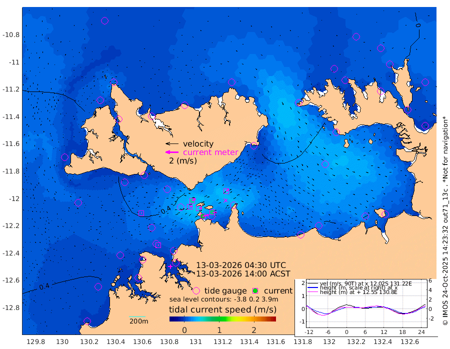 95cm/s 78T +4cm/s rms + 6cm/s 51T. Darwin_C1 52m 68cm/s 91T +4cm/s rms + 7cm/s -161T. Darwin_CW1 22m 33cm/s 72T +4cm/s rms + 8cm/s 61T. Darwin_CW2 34m 43cm/s 51T +3cm/s rms + 9cm/s 98T. Darwin_CW3 22m 44cm/s 89T +5cm/s rms + 7cm/s 88T. Darwin_C3 56m 62cm/s 66T +2cm/s rms + 9cm/s -126T. Darwin_CTbW 22m 15cm/s 85T +1cm/s rms + 1cm/s -47T. DARBGF 30m 10cm/s 105T +4cm/s rms + 3cm/s 80T. NRSDAR 19m 11cm Goodrich Bank 62cm Point Jenny 60cm Native Point 57cm Fish Reef 61cm Tapa Bay 42cm Point Fawcett (Offshore) 52cm Burge Point 45cm Munkunuwa 56cm Beagle A 45cm Parsons Bank 61cm Fenton Patches 54cm Hancox Shoal Area 67cm Nightcliff 52cm Darwin 53cm Charles Point Patches 48cm Glyde Point 54cm Chambers Bay 46cm Point Stuart 41cm Cape Hotham 55cm Christine Reef 53cm West Alligator Head 52cm East Field Island 42cm Two Hills Bay 38cm Camp Point 52cm Medina Inlet South 25cm South Barlow Point 27cm St. Asaph Bay 10cm Cape Van Dieman 7cm Snake Bay 16cm Cache Point 17cm Point Jahleel (Off) 26cm Cape Don 10cm Port Essington 16cm Smith Point - West 9cm NW Peacock Island 12cm North Of Jones Shoal 3cm Peacock Island -3cm Point David 10cm D'urville Point -2cm Copeland Island 2cm One Tree Point