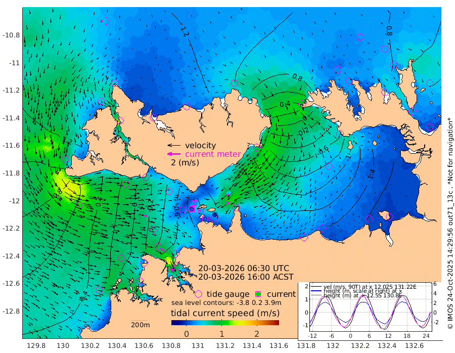 7cm/s 81T +4cm/s rms + 6cm/s 51T. Darwin_C1 52m 1cm/s -89T +4cm/s rms + 7cm/s -161T. Darwin_CW1 22m 6cm/s 72T +4cm/s rms + 8cm/s 61T. Darwin_CW2 34m 45cm/s -143T +3cm/s rms + 9cm/s 98T. Darwin_CW3 22m 30cm/s -87T +5cm/s rms + 7cm/s 88T. Darwin_C3 56m 24cm/s 61T +2cm/s rms + 9cm/s -126T. Darwin_CTbW 22m 76cm/s 96T +1cm/s rms + 1cm/s -47T. DARBGF 30m 83cm/s 127T +4cm/s rms + 3cm/s 80T. NRSDAR 19m 105cm Goodrich Bank 61cm Point Jenny 65cm Native Point 57cm Fish Reef 42cm Tapa Bay 110cm Point Fawcett (Offshore) 33cm Burge Point 61cm Munkunuwa 90cm Beagle A 18cm Parsons Bank 41cm Fenton Patches -9cm Hancox Shoal Area 10cm Nightcliff -5cm Darwin 23cm Charles Point Patches -57cm Glyde Point -150cm Chambers Bay -165cm Point Stuart -79cm Cape Hotham -130cm Christine Reef -192cm West Alligator Head -231cm East Field Island -99cm Two Hills Bay -97cm Camp Point 45cm Medina Inlet South 116cm South Barlow Point 118cm St. Asaph Bay 113cm Cape Van Dieman 111cm Snake Bay 102cm Cache Point 76cm Point Jahleel (Off) 20cm Cape Don 65cm Port Essington 71cm Smith Point - West 64cm NW Peacock Island 74cm North Of Jones Shoal 25cm Peacock Island 29cm Point David 66cm D'urville Point 21cm Copeland Island 31cm One Tree Point