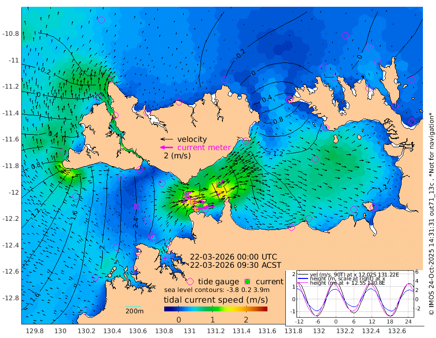 189cm/s 79T +4cm/s rms + 6cm/s 51T. Darwin_C1 52m 142cm/s 93T +4cm/s rms + 7cm/s -161T. Darwin_CW1 22m 109cm/s 71T +4cm/s rms + 8cm/s 61T. Darwin_CW2 34m 113cm/s 45T +3cm/s rms + 9cm/s 98T. Darwin_CW3 22m 183cm/s 89T +5cm/s rms + 7cm/s 88T. Darwin_C3 56m 92cm/s 66T +2cm/s rms + 9cm/s -126T. Darwin_CTbW 22m 15cm/s -41T +1cm/s rms + 1cm/s -47T. DARBGF 30m 32cm/s -38T +4cm/s rms + 3cm/s 80T. NRSDAR 19m -43cm Goodrich Bank 171cm Point Jenny 167cm Native Point 179cm Fish Reef 205cm Tapa Bay 49cm Point Fawcett (Offshore) 224cm Burge Point 179cm Munkunuwa 127cm Beagle A 229cm Parsons Bank 211cm Fenton Patches 242cm Hancox Shoal Area 243cm Nightcliff 260cm Darwin 223cm Charles Point Patches 215cm Glyde Point 221cm Chambers Bay 220cm Point Stuart 199cm Cape Hotham 209cm Christine Reef 242cm West Alligator Head 243cm East Field Island 179cm Two Hills Bay 176cm Camp Point 194cm Medina Inlet South 29cm South Barlow Point -2cm St. Asaph Bay -43cm Cape Van Dieman -37cm Snake Bay -31cm Cache Point 0cm Point Jahleel (Off) 74cm Cape Don 11cm Port Essington 13cm Smith Point - West 11cm NW Peacock Island -13cm North Of Jones Shoal -2cm Peacock Island 45cm Point David 18cm D'urville Point 52cm Copeland Island 41cm One Tree Point