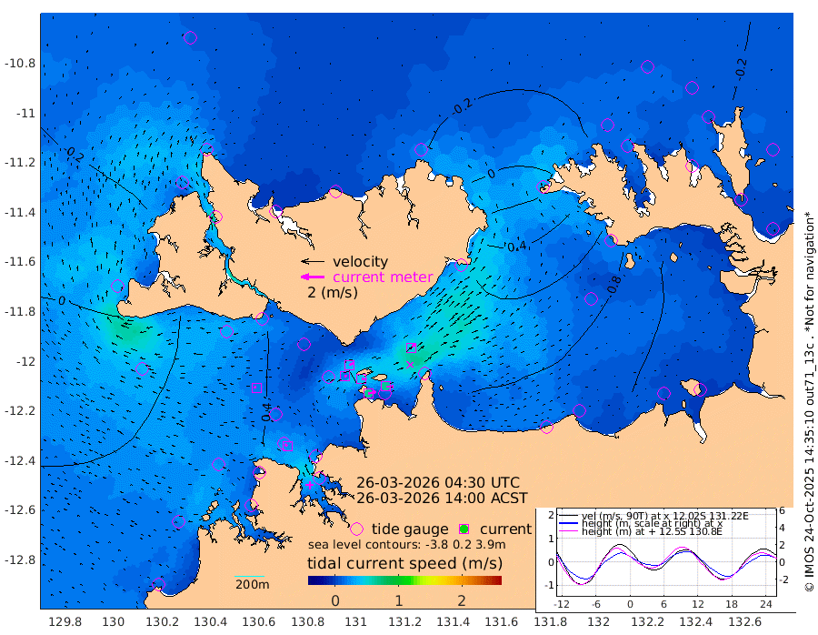67cm/s 78T +4cm/s rms + 6cm/s 51T. Darwin_C1 52m 65cm/s 91T +4cm/s rms + 7cm/s -161T. Darwin_CW1 22m 18cm/s 73T +4cm/s rms + 8cm/s 61T. Darwin_CW2 34m 46cm/s 44T +3cm/s rms + 9cm/s 98T. Darwin_CW3 22m 41cm/s 92T +5cm/s rms + 7cm/s 88T. Darwin_C3 56m 39cm/s 67T +2cm/s rms + 9cm/s -126T. Darwin_CTbW 22m 18cm/s -77T +1cm/s rms + 1cm/s -47T. DARBGF 30m 24cm/s -51T +4cm/s rms + 3cm/s 80T. NRSDAR 19m -16cm Goodrich Bank 57cm Point Jenny 53cm Native Point 50cm Fish Reef 57cm Tapa Bay 15cm Point Fawcett (Offshore) 67cm Burge Point 34cm Munkunuwa 45cm Beagle A 49cm Parsons Bank 66cm Fenton Patches 64cm Hancox Shoal Area 73cm Nightcliff 62cm Darwin 51cm Charles Point Patches 84cm Glyde Point 125cm Chambers Bay 129cm Point Stuart 88cm Cape Hotham 123cm Christine Reef 147cm West Alligator Head 165cm East Field Island 95cm Two Hills Bay 92cm Camp Point 46cm Medina Inlet South -8cm South Barlow Point -6cm St. Asaph Bay -19cm Cape Van Dieman -24cm Snake Bay -7cm Cache Point 1cm Point Jahleel (Off) 29cm Cape Don -8cm Port Essington -6cm Smith Point - West -9cm NW Peacock Island -10cm North Of Jones Shoal -4cm Peacock Island -8cm Point David -11cm D'urville Point -6cm Copeland Island -5cm One Tree Point