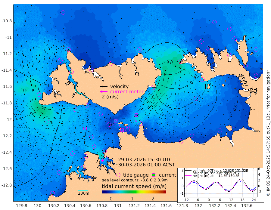 20cm/s 78T +4cm/s rms + 6cm/s 51T. Darwin_C1 52m 18cm/s -86T +4cm/s rms + 7cm/s -161T. Darwin_CW1 22m 11cm/s -115T +4cm/s rms + 8cm/s 61T. Darwin_CW2 34m 14cm/s -154T +3cm/s rms + 9cm/s 98T. Darwin_CW3 22m 29cm/s -91T +5cm/s rms + 7cm/s 88T. Darwin_C3 56m 23cm/s 62T +2cm/s rms + 9cm/s -126T. Darwin_CTbW 22m 31cm/s 99T +1cm/s rms + 1cm/s -47T. DARBGF 30m 32cm/s 128T +4cm/s rms + 3cm/s 80T. NRSDAR 19m 51cm Goodrich Bank 2cm Point Jenny 1cm Native Point -2cm Fish Reef -9cm Tapa Bay 46cm Point Fawcett (Offshore) -28cm Burge Point -8cm Munkunuwa 3cm Beagle A -16cm Parsons Bank -29cm Fenton Patches -24cm Hancox Shoal Area -27cm Nightcliff -31cm Darwin -12cm Charles Point Patches -38cm Glyde Point -58cm Chambers Bay -64cm Point Stuart -37cm Cape Hotham -57cm Christine Reef -77cm West Alligator Head -96cm East Field Island -32cm Two Hills Bay -44cm Camp Point -7cm Medina Inlet South 44cm South Barlow Point 48cm St. Asaph Bay 56cm Cape Van Dieman 57cm Snake Bay 56cm Cache Point 43cm Point Jahleel (Off) 27cm Cape Don 53cm Port Essington 54cm Smith Point - West 55cm NW Peacock Island 61cm North Of Jones Shoal 22cm Peacock Island 53cm Point David 57cm D'urville Point 50cm Copeland Island 55cm One Tree Point