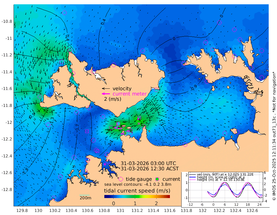 101cm/s -101T +4cm/s rms + 6cm/s 51T. Darwin_C1 52m 95cm/s -92T +4cm/s rms + 7cm/s -161T. Darwin_CW1 22m 66cm/s -106T +4cm/s rms + 8cm/s 61T. Darwin_CW2 34m 70cm/s -137T +3cm/s rms + 9cm/s 98T. Darwin_CW3 22m 117cm/s -91T +5cm/s rms + 7cm/s 88T. Darwin_C3 56m 46cm/s -116T +2cm/s rms + 9cm/s -126T. Darwin_CTbW 22m 9cm/s 145T +1cm/s rms + 1cm/s -47T. DARBGF 30m 15cm/s 152T +4cm/s rms + 3cm/s 80T. NRSDAR 19m 41cm Goodrich Bank -131cm Point Jenny -128cm Native Point -144cm Fish Reef -159cm Tapa Bay -38cm Point Fawcett (Offshore) -182cm Burge Point -146cm Munkunuwa -97cm Beagle A -177cm Parsons Bank -162cm Fenton Patches -180cm Hancox Shoal Area -179cm Nightcliff -204cm Darwin -176cm Charles Point Patches -164cm Glyde Point -159cm Chambers Bay -161cm Point Stuart -150cm Cape Hotham -137cm Christine Reef -174cm West Alligator Head -174cm East Field Island -127cm Two Hills Bay -132cm Camp Point -154cm Medina Inlet South -19cm South Barlow Point 7cm St. Asaph Bay 38cm Cape Van Dieman 33cm Snake Bay 32cm Cache Point 10cm Point Jahleel (Off) -49cm Cape Don -3cm Port Essington 5cm Smith Point - West 4cm NW Peacock Island 21cm North Of Jones Shoal 5cm Peacock Island -32cm Point David 0cm D'urville Point -36cm Copeland Island -27cm One Tree Point
