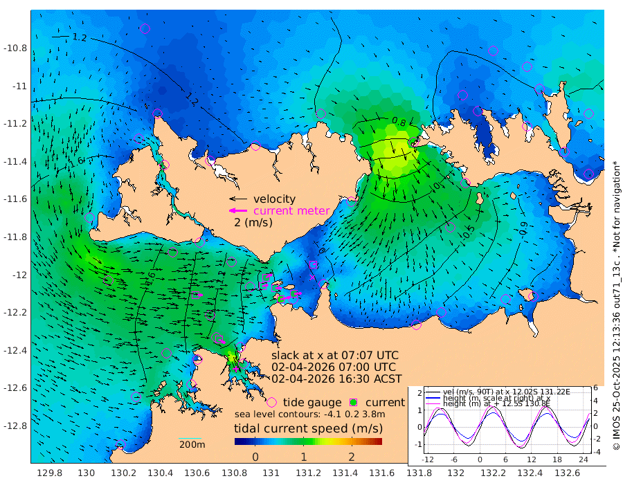 115cm/s 78T +4cm/s rms + 6cm/s 51T. Darwin_C1 52m 85cm/s 86T +4cm/s rms + 7cm/s -161T. Darwin_CW1 22m 64cm/s 75T +4cm/s rms + 8cm/s 61T. Darwin_CW2 34m 27cm/s 65T +3cm/s rms + 9cm/s 98T. Darwin_CW3 22m 69cm/s 87T +5cm/s rms + 7cm/s 88T. Darwin_C3 56m 77cm/s 63T +2cm/s rms + 9cm/s -126T. Darwin_CTbW 22m 81cm/s 92T +1cm/s rms + 1cm/s -47T. DARBGF 30m 83cm/s 121T +4cm/s rms + 3cm/s 80T. NRSDAR 19m 88cm Goodrich Bank 164cm Point Jenny 166cm Native Point 171cm Fish Reef 165cm Tapa Bay 150cm Point Fawcett (Offshore) 163cm Burge Point 170cm Munkunuwa 172cm Beagle A 150cm Parsons Bank 167cm Fenton Patches 128cm Hancox Shoal Area 154cm Nightcliff 151cm Darwin 163cm Charles Point Patches 60cm Glyde Point -44cm Chambers Bay -70cm Point Stuart 18cm Cape Hotham -38cm Christine Reef -90cm West Alligator Head -133cm East Field Island -17cm Two Hills Bay -11cm Camp Point 168cm Medina Inlet South 148cm South Barlow Point 129cm St. Asaph Bay 97cm Cape Van Dieman 101cm Snake Bay 89cm Cache Point 78cm Point Jahleel (Off) 64cm Cape Don 79cm Port Essington 83cm Smith Point - West 74cm NW Peacock Island 76cm North Of Jones Shoal 27cm Peacock Island 54cm Point David 81cm D'urville Point 49cm Copeland Island 58cm One Tree Point