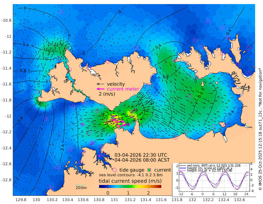 203cm/s 79T +4cm/s rms + 6cm/s 51T. Darwin_C1 52m 159cm/s 93T +4cm/s rms + 7cm/s -161T. Darwin_CW1 22m 131cm/s 72T +4cm/s rms + 8cm/s 61T. Darwin_CW2 34m 108cm/s 46T +3cm/s rms + 9cm/s 98T. Darwin_CW3 22m 210cm/s 89T +5cm/s rms + 7cm/s 88T. Darwin_C3 56m 96cm/s 66T +2cm/s rms + 9cm/s -126T. Darwin_CTbW 22m 33cm/s 74T +1cm/s rms + 1cm/s -47T. DARBGF 30m 19cm/s 91T +4cm/s rms + 3cm/s 80T. NRSDAR 19m -10cm Goodrich Bank 205cm Point Jenny 202cm Native Point 228cm Fish Reef 242cm Tapa Bay 108cm Point Fawcett (Offshore) 254cm Burge Point 233cm Munkunuwa 167cm Beagle A 258cm Parsons Bank 237cm Fenton Patches 256cm Hancox Shoal Area 265cm Nightcliff 289cm Darwin 259cm Charles Point Patches 205cm Glyde Point 162cm Chambers Bay 158cm Point Stuart 179cm Cape Hotham 141cm Christine Reef 170cm West Alligator Head 148cm East Field Island 145cm Two Hills Bay 135cm Camp Point 242cm Medina Inlet South 82cm South Barlow Point 48cm St. Asaph Bay -5cm Cape Van Dieman 5cm Snake Bay 2cm Cache Point 25cm Point Jahleel (Off) 81cm Cape Don 35cm Port Essington 34cm Smith Point - West 27cm NW Peacock Island 15cm North Of Jones Shoal 7cm Peacock Island 52cm Point David 35cm D'urville Point 55cm Copeland Island 52cm One Tree Point