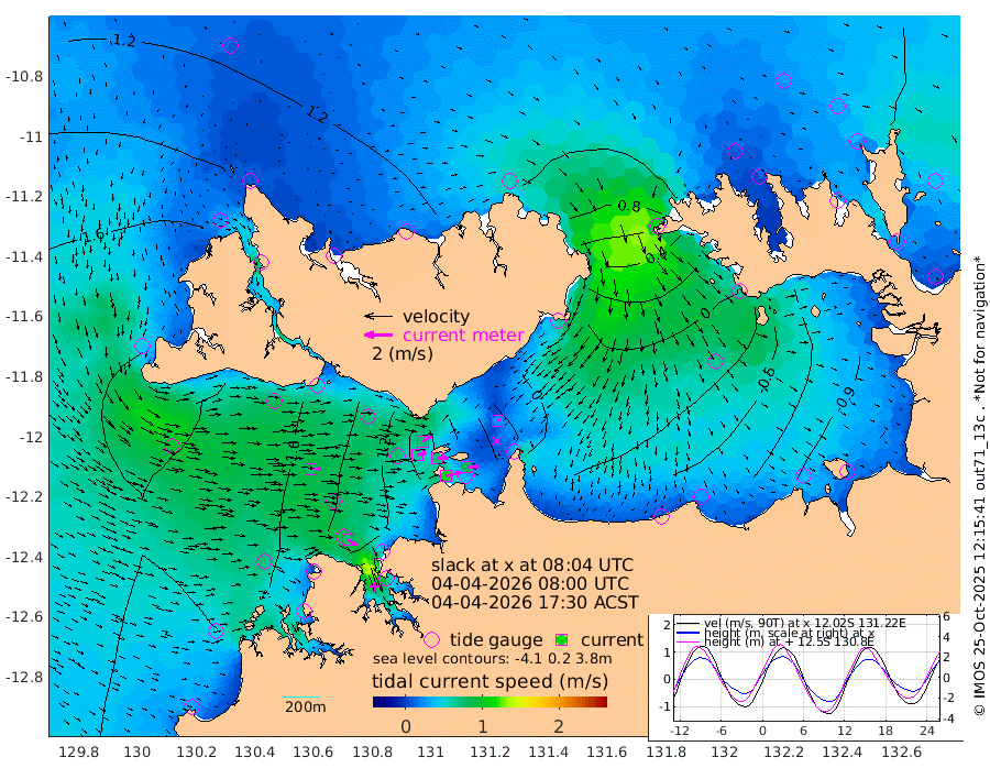 106cm/s 78T +4cm/s rms + 6cm/s 51T. Darwin_C1 52m 86cm/s 84T +4cm/s rms + 7cm/s -161T. Darwin_CW1 22m 65cm/s 75T +4cm/s rms + 8cm/s 61T. Darwin_CW2 34m 21cm/s 68T +3cm/s rms + 9cm/s 98T. Darwin_CW3 22m 74cm/s 87T +5cm/s rms + 7cm/s 88T. Darwin_C3 56m 76cm/s 63T +2cm/s rms + 9cm/s -126T. Darwin_CTbW 22m 76cm/s 91T +1cm/s rms + 1cm/s -47T. DARBGF 30m 75cm/s 121T +4cm/s rms + 3cm/s 80T. NRSDAR 19m 91cm Goodrich Bank 167cm Point Jenny 170cm Native Point 171cm Fish Reef 172cm Tapa Bay 149cm Point Fawcett (Offshore) 174cm Burge Point 175cm Munkunuwa 172cm Beagle A 163cm Parsons Bank 173cm Fenton Patches 142cm Hancox Shoal Area 168cm Nightcliff 167cm Darwin 177cm Charles Point Patches 69cm Glyde Point -37cm Chambers Bay -66cm Point Stuart 27cm Cape Hotham -30cm Christine Reef -87cm West Alligator Head -130cm East Field Island -12cm Two Hills Bay 1cm Camp Point 176cm Medina Inlet South 152cm South Barlow Point 130cm St. Asaph Bay 99cm Cape Van Dieman 107cm Snake Bay 91cm Cache Point 82cm Point Jahleel (Off) 70cm Cape Don 86cm Port Essington 88cm Smith Point - West 82cm NW Peacock Island 83cm North Of Jones Shoal 30cm Peacock Island 69cm Point David 88cm D'urville Point 64cm Copeland Island 72cm One Tree Point