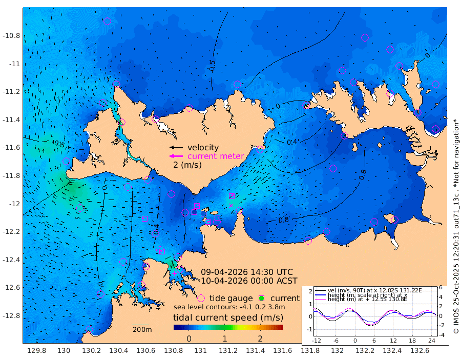 43cm/s 80T +4cm/s rms + 6cm/s 51T. Darwin_C1 52m 17cm/s 88T +4cm/s rms + 7cm/s -161T. Darwin_CW1 22m 2cm/s 3T +4cm/s rms + 8cm/s 61T. Darwin_CW2 34m 36cm/s 42T +3cm/s rms + 9cm/s 98T. Darwin_CW3 22m 9cm/s 98T +5cm/s rms + 7cm/s 88T. Darwin_C3 56m 25cm/s 65T +2cm/s rms + 9cm/s -126T. Darwin_CTbW 22m 31cm/s -86T +1cm/s rms + 1cm/s -47T. DARBGF 30m 37cm/s -54T +4cm/s rms + 3cm/s 80T. NRSDAR 19m -65cm Goodrich Bank -45cm Point Jenny -48cm Native Point -41cm Fish Reef -35cm Tapa Bay -65cm Point Fawcett (Offshore) -37cm Burge Point -46cm Munkunuwa -62cm Beagle A -15cm Parsons Bank -38cm Fenton Patches -3cm Hancox Shoal Area -10cm Nightcliff -10cm Darwin -30cm Charles Point Patches 23cm Glyde Point 72cm Chambers Bay 85cm Point Stuart 42cm Cape Hotham 56cm Christine Reef 97cm West Alligator Head 111cm East Field Island 56cm Two Hills Bay 42cm Camp Point -36cm Medina Inlet South -67cm South Barlow Point -73cm St. Asaph Bay -66cm Cape Van Dieman -57cm Snake Bay -59cm Cache Point -41cm Point Jahleel (Off) -5cm Cape Don -27cm Port Essington -28cm Smith Point - West -21cm NW Peacock Island -30cm North Of Jones Shoal -8cm Peacock Island 17cm Point David -18cm D'urville Point 22cm Copeland Island 12cm One Tree Point