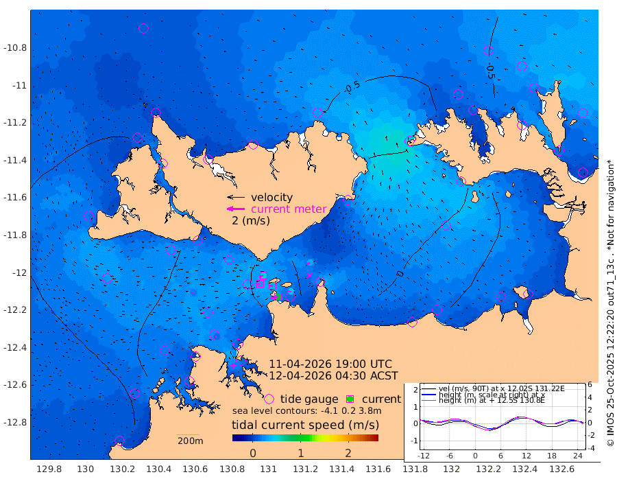 84cm/s -103T +4cm/s rms + 6cm/s 51T. Darwin_C1 52m 40cm/s -89T +4cm/s rms + 7cm/s -161T. Darwin_CW1 22m 26cm/s -106T +4cm/s rms + 8cm/s 61T. Darwin_CW2 34m 30cm/s -120T +3cm/s rms + 9cm/s 98T. Darwin_CW3 22m 33cm/s -90T +5cm/s rms + 7cm/s 88T. Darwin_C3 56m 50cm/s -116T +2cm/s rms + 9cm/s -126T. Darwin_CTbW 22m 17cm/s -93T +1cm/s rms + 1cm/s -47T. DARBGF 30m 13cm/s -72T +4cm/s rms + 3cm/s 80T. NRSDAR 19m -58cm Goodrich Bank -66cm Point Jenny -68cm Native Point -55cm Fish Reef -64cm Tapa Bay -62cm Point Fawcett (Offshore) -63cm Burge Point -62cm Munkunuwa -63cm Beagle A -61cm Parsons Bank -58cm Fenton Patches -54cm Hancox Shoal Area -53cm Nightcliff -58cm Darwin -64cm Charles Point Patches -30cm Glyde Point 5cm Chambers Bay 11cm Point Stuart -13cm Cape Hotham -14cm Christine Reef 16cm West Alligator Head 30cm East Field Island -9cm Two Hills Bay -12cm Camp Point -62cm Medina Inlet South -67cm South Barlow Point -62cm St. Asaph Bay -59cm Cape Van Dieman -60cm Snake Bay -56cm Cache Point -49cm Point Jahleel (Off) -42cm Cape Don -48cm Port Essington -51cm Smith Point - West -49cm NW Peacock Island -45cm North Of Jones Shoal -15cm Peacock Island -35cm Point David -49cm D'urville Point -31cm Copeland Island -36cm One Tree Point