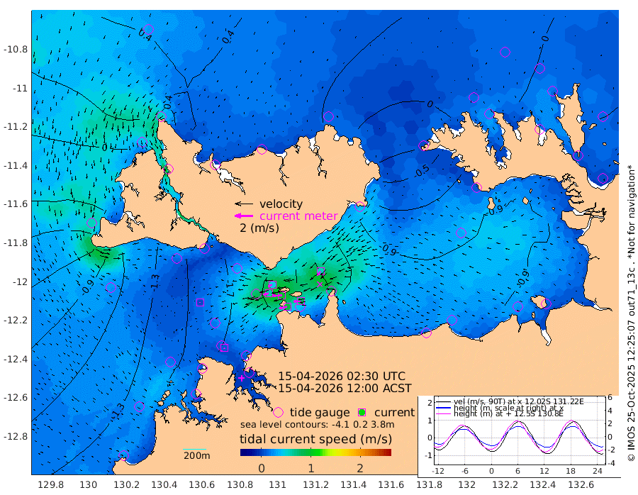 90cm/s -101T +4cm/s rms + 6cm/s 51T. Darwin_C1 52m 80cm/s -91T +4cm/s rms + 7cm/s -161T. Darwin_CW1 22m 59cm/s -106T +4cm/s rms + 8cm/s 61T. Darwin_CW2 34m 58cm/s -137T +3cm/s rms + 9cm/s 98T. Darwin_CW3 22m 99cm/s -91T +5cm/s rms + 7cm/s 88T. Darwin_C3 56m 47cm/s -116T +2cm/s rms + 9cm/s -126T. Darwin_CTbW 22m 6cm/s 178T +1cm/s rms + 1cm/s -47T. DARBGF 30m 9cm/s 170T +4cm/s rms + 3cm/s 80T. NRSDAR 19m 40cm Goodrich Bank -109cm Point Jenny -107cm Native Point -114cm Fish Reef -135cm Tapa Bay -24cm Point Fawcett (Offshore) -144cm Burge Point -115cm Munkunuwa -78cm Beagle A -144cm Parsons Bank -136cm Fenton Patches -154cm Hancox Shoal Area -157cm Nightcliff -171cm Darwin -150cm Charles Point Patches -134cm Glyde Point -133cm Chambers Bay -122cm Point Stuart -116cm Cape Hotham -114cm Christine Reef -133cm West Alligator Head -133cm East Field Island -95cm Two Hills Bay -108cm Camp Point -127cm Medina Inlet South -11cm South Barlow Point 11cm St. Asaph Bay 39cm Cape Van Dieman 35cm Snake Bay 35cm Cache Point 16cm Point Jahleel (Off) -35cm Cape Don 3cm Port Essington 7cm Smith Point - West 8cm NW Peacock Island 22cm North Of Jones Shoal 6cm Peacock Island -21cm Point David 3cm D'urville Point -25cm Copeland Island -16cm One Tree Point
