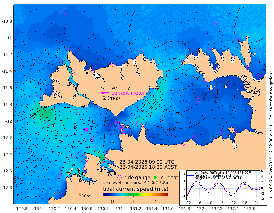 25cm/s -101T +4cm/s rms + 6cm/s 51T. Darwin_C1 52m 15cm/s -89T +4cm/s rms + 7cm/s -161T. Darwin_CW1 22m 1cm/s 162T +4cm/s rms + 8cm/s 61T. Darwin_CW2 34m 35cm/s -138T +3cm/s rms + 9cm/s 98T. Darwin_CW3 22m 10cm/s -87T +5cm/s rms + 7cm/s 88T. Darwin_C3 56m 9cm/s -115T +2cm/s rms + 9cm/s -126T. Darwin_CTbW 22m 34cm/s 95T +1cm/s rms + 1cm/s -47T. DARBGF 30m 34cm/s 129T +4cm/s rms + 3cm/s 80T. NRSDAR 19m 91cm Goodrich Bank 37cm Point Jenny 40cm Native Point 35cm Fish Reef 33cm Tapa Bay 80cm Point Fawcett (Offshore) 24cm Burge Point 34cm Munkunuwa 47cm Beagle A 19cm Parsons Bank 20cm Fenton Patches 8cm Hancox Shoal Area 10cm Nightcliff 22cm Darwin 47cm Charles Point Patches -18cm Glyde Point -75cm Chambers Bay -88cm Point Stuart -35cm Cape Hotham -67cm Christine Reef -108cm West Alligator Head -127cm East Field Island -47cm Two Hills Bay -31cm Camp Point 41cm Medina Inlet South 89cm South Barlow Point 90cm St. Asaph Bay 94cm Cape Van Dieman 97cm Snake Bay 86cm Cache Point 68cm Point Jahleel (Off) 37cm Cape Don 72cm Port Essington 67cm Smith Point - West 67cm NW Peacock Island 80cm North Of Jones Shoal 27cm Peacock Island 51cm Point David 66cm D'urville Point 45cm Copeland Island 56cm One Tree Point