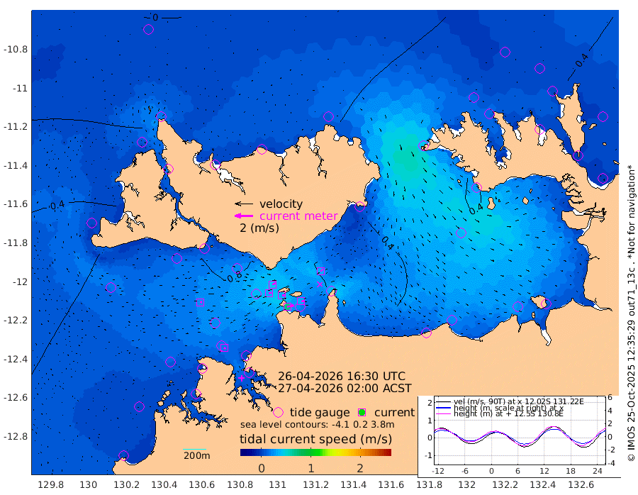 72cm/s 78T +4cm/s rms + 6cm/s 51T. Darwin_C1 52m 32cm/s 86T +4cm/s rms + 7cm/s -161T. Darwin_CW1 22m 31cm/s 73T +4cm/s rms + 8cm/s 61T. Darwin_CW2 34m 33cm/s 48T +3cm/s rms + 9cm/s 98T. Darwin_CW3 22m 33cm/s 88T +5cm/s rms + 7cm/s 88T. Darwin_C3 56m 44cm/s 64T +2cm/s rms + 9cm/s -126T. Darwin_CTbW 22m 23cm/s 90T +1cm/s rms + 1cm/s -47T. DARBGF 30m 20cm/s 117T +4cm/s rms + 3cm/s 80T. NRSDAR 19m -6cm Goodrich Bank 72cm Point Jenny 67cm Native Point 79cm Fish Reef 76cm Tapa Bay 43cm Point Fawcett (Offshore) 76cm Burge Point 67cm Munkunuwa 58cm Beagle A 82cm Parsons Bank 72cm Fenton Patches 79cm Hancox Shoal Area 80cm Nightcliff 80cm Darwin 74cm Charles Point Patches 61cm Glyde Point 56cm Chambers Bay 52cm Point Stuart 60cm Cape Hotham 42cm Christine Reef 52cm West Alligator Head 40cm East Field Island 51cm Two Hills Bay 37cm Camp Point 70cm Medina Inlet South 25cm South Barlow Point 15cm St. Asaph Bay 0cm Cape Van Dieman 0cm Snake Bay 7cm Cache Point 13cm Point Jahleel (Off) 38cm Cape Don 26cm Port Essington 28cm Smith Point - West 27cm NW Peacock Island 17cm North Of Jones Shoal 9cm Peacock Island 47cm Point David 34cm D'urville Point 51cm Copeland Island 44cm One Tree Point