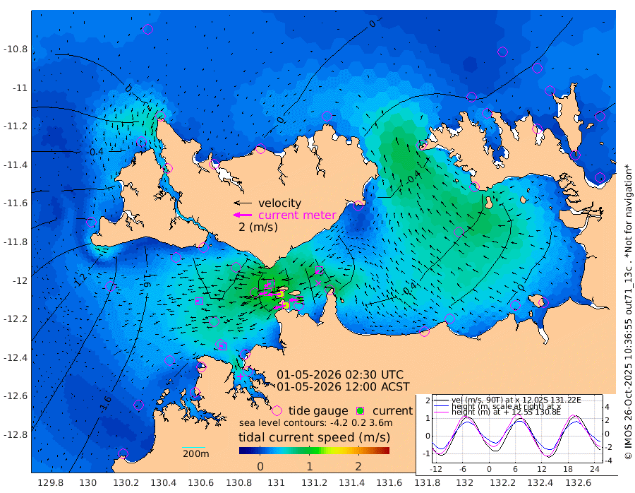 140cm/s -102T +4cm/s rms + 6cm/s 51T. Darwin_C1 52m 115cm/s -89T +4cm/s rms + 7cm/s -161T. Darwin_CW1 22m 93cm/s -107T +4cm/s rms + 8cm/s 61T. Darwin_CW2 34m 59cm/s -132T +3cm/s rms + 9cm/s 98T. Darwin_CW3 22m 139cm/s -91T +5cm/s rms + 7cm/s 88T. Darwin_C3 56m 76cm/s -115T +2cm/s rms + 9cm/s -126T. Darwin_CTbW 22m 40cm/s -95T +1cm/s rms + 1cm/s -47T. DARBGF 30m 35cm/s -71T +4cm/s rms + 3cm/s 80T. NRSDAR 19m 29cm Goodrich Bank -136cm Point Jenny -135cm Native Point -153cm Fish Reef -163cm Tapa Bay -59cm Point Fawcett (Offshore) -167cm Burge Point -167cm Munkunuwa -105cm Beagle A -175cm Parsons Bank -156cm Fenton Patches -165cm Hancox Shoal Area -170cm Nightcliff -189cm Darwin -169cm Charles Point Patches -118cm Glyde Point -68cm Chambers Bay -60cm Point Stuart -90cm Cape Hotham -50cm Christine Reef -63cm West Alligator Head -37cm East Field Island -59cm Two Hills Bay -56cm Camp Point -161cm Medina Inlet South -46cm South Barlow Point -16cm St. Asaph Bay 22cm Cape Van Dieman 17cm Snake Bay 24cm Cache Point 7cm Point Jahleel (Off) -32cm Cape Don -6cm Port Essington -4cm Smith Point - West 2cm NW Peacock Island 17cm North Of Jones Shoal 3cm Peacock Island -21cm Point David -7cm D'urville Point -24cm Copeland Island -16cm One Tree Point