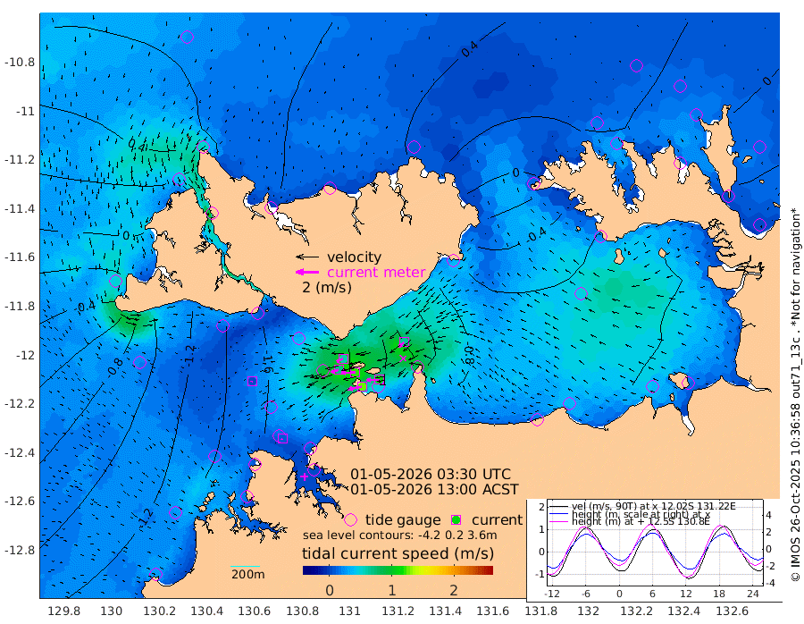 125cm/s -101T +4cm/s rms + 6cm/s 51T. Darwin_C1 52m 109cm/s -91T +4cm/s rms + 7cm/s -161T. Darwin_CW1 22m 70cm/s -106T +4cm/s rms + 8cm/s 61T. Darwin_CW2 34m 67cm/s -134T +3cm/s rms + 9cm/s 98T. Darwin_CW3 22m 122cm/s -91T +5cm/s rms + 7cm/s 88T. Darwin_C3 56m 60cm/s -116T +2cm/s rms + 9cm/s -126T. Darwin_CTbW 22m 7cm/s -154T +1cm/s rms + 1cm/s -47T. DARBGF 30m 9cm/s -167T +4cm/s rms + 3cm/s 80T. NRSDAR 19m 65cm Goodrich Bank -95cm Point Jenny -92cm Native Point -113cm Fish Reef -124cm Tapa Bay -11cm Point Fawcett (Offshore) -135cm Burge Point -124cm Munkunuwa -60cm Beagle A -145cm Parsons Bank -121cm Fenton Patches -144cm Hancox Shoal Area -140cm Nightcliff -164cm Darwin -134cm Charles Point Patches -123cm Glyde Point -111cm Chambers Bay -116cm Point Stuart -109cm Cape Hotham -90cm Christine Reef -129cm West Alligator Head -122cm East Field Island -89cm Two Hills Bay -83cm Camp Point -122cm Medina Inlet South 5cm South Barlow Point 30cm St. Asaph Bay 61cm Cape Van Dieman 57cm Snake Bay 59cm Cache Point 35cm Point Jahleel (Off) -17cm Cape Don 22cm Port Essington 26cm Smith Point - West 29cm NW Peacock Island 46cm North Of Jones Shoal 14cm Peacock Island -2cm Point David 23cm D'urville Point -7cm Copeland Island 3cm One Tree Point