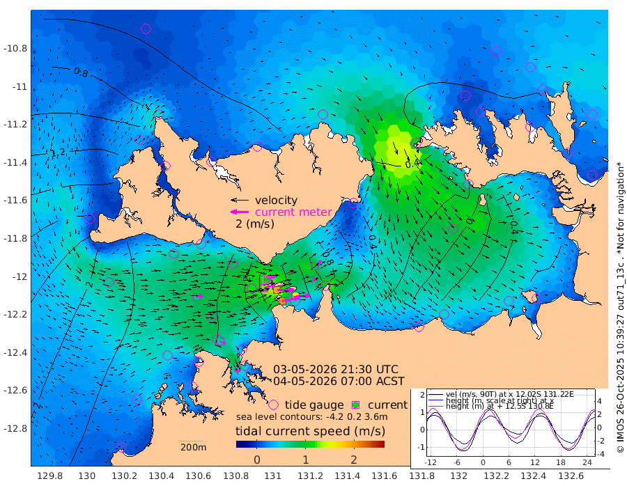 200cm/s 77T +4cm/s rms + 6cm/s 51T. Darwin_C1 52m 159cm/s 91T +4cm/s rms + 7cm/s -161T. Darwin_CW1 22m 127cm/s 74T +4cm/s rms + 8cm/s 61T. Darwin_CW2 34m 91cm/s 48T +3cm/s rms + 9cm/s 98T. Darwin_CW3 22m 188cm/s 89T +5cm/s rms + 7cm/s 88T. Darwin_C3 56m 105cm/s 65T +2cm/s rms + 9cm/s -126T. Darwin_CTbW 22m 68cm/s 86T +1cm/s rms + 1cm/s -47T. DARBGF 30m 66cm/s 113T +4cm/s rms + 3cm/s 80T. NRSDAR 19m 39cm Goodrich Bank 219cm Point Jenny 219cm Native Point 227cm Fish Reef 245cm Tapa Bay 145cm Point Fawcett (Offshore) 241cm Burge Point 243cm Munkunuwa 194cm Beagle A 239cm Parsons Bank 235cm Fenton Patches 232cm Hancox Shoal Area 253cm Nightcliff 257cm Darwin 247cm Charles Point Patches 149cm Glyde Point 66cm Chambers Bay 41cm Point Stuart 107cm Cape Hotham 62cm Christine Reef 39cm West Alligator Head -1cm East Field Island 65cm Two Hills Bay 66cm Camp Point 240cm Medina Inlet South 128cm South Barlow Point 100cm St. Asaph Bay 45cm Cape Van Dieman 51cm Snake Bay 42cm Cache Point 52cm Point Jahleel (Off) 71cm Cape Don 50cm Port Essington 56cm Smith Point - West 44cm NW Peacock Island 39cm North Of Jones Shoal 14cm Peacock Island 39cm Point David 51cm D'urville Point 39cm Copeland Island 41cm One Tree Point