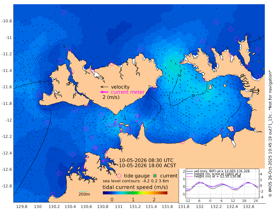 76cm/s -101T +4cm/s rms + 6cm/s 51T. Darwin_C1 52m 21cm/s -89T +4cm/s rms + 7cm/s -161T. Darwin_CW1 22m 26cm/s -108T +4cm/s rms + 8cm/s 61T. Darwin_CW2 34m 30cm/s -132T +3cm/s rms + 9cm/s 98T. Darwin_CW3 22m 22cm/s -92T +5cm/s rms + 7cm/s 88T. Darwin_C3 56m 49cm/s -115T +2cm/s rms + 9cm/s -126T. Darwin_CTbW 22m 17cm/s -89T +1cm/s rms + 1cm/s -47T. DARBGF 30m 18cm/s -66T +4cm/s rms + 3cm/s 80T. NRSDAR 19m 20cm Goodrich Bank -33cm Point Jenny -31cm Native Point -30cm Fish Reef -37cm Tapa Bay -6cm Point Fawcett (Offshore) -34cm Burge Point -37cm Munkunuwa -27cm Beagle A -42cm Parsons Bank -39cm Fenton Patches -43cm Hancox Shoal Area -55cm Nightcliff -34cm Darwin -22cm Charles Point Patches -21cm Glyde Point -20cm Chambers Bay -12cm Point Stuart -22cm Cape Hotham -20cm Christine Reef -15cm West Alligator Head -5cm East Field Island -15cm Two Hills Bay -4cm Camp Point -30cm Medina Inlet South -4cm South Barlow Point 4cm St. Asaph Bay 18cm Cape Van Dieman 15cm Snake Bay 16cm Cache Point 7cm Point Jahleel (Off) -2cm Cape Don 10cm Port Essington 1cm Smith Point - West 3cm NW Peacock Island 9cm North Of Jones Shoal 2cm Peacock Island -4cm Point David -1cm D'urville Point -6cm Copeland Island 0cm One Tree Point