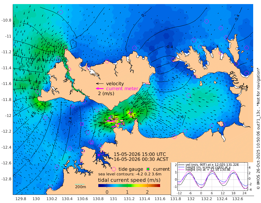 164cm/s -101T +4cm/s rms + 6cm/s 51T. Darwin_C1 52m 142cm/s -91T +4cm/s rms + 7cm/s -161T. Darwin_CW1 22m 80cm/s -106T +4cm/s rms + 8cm/s 61T. Darwin_CW2 34m 95cm/s -138T +3cm/s rms + 9cm/s 98T. Darwin_CW3 22m 143cm/s -90T +5cm/s rms + 7cm/s 88T. Darwin_C3 56m 88cm/s -116T +2cm/s rms + 9cm/s -126T. Darwin_CTbW 22m 11cm/s 147T +1cm/s rms + 1cm/s -47T. DARBGF 30m 20cm/s 149T +4cm/s rms + 3cm/s 80T. NRSDAR 19m 17cm Goodrich Bank -182cm Point Jenny -181cm Native Point -197cm Fish Reef -216cm Tapa Bay -67cm Point Fawcett (Offshore) -243cm Burge Point -184cm Munkunuwa -159cm Beagle A -232cm Parsons Bank -238cm Fenton Patches -243cm Hancox Shoal Area -254cm Nightcliff -273cm Darwin -237cm Charles Point Patches -228cm Glyde Point -215cm Chambers Bay -219cm Point Stuart -208cm Cape Hotham -202cm Christine Reef -238cm West Alligator Head -245cm East Field Island -181cm Two Hills Bay -189cm Camp Point -208cm Medina Inlet South -52cm South Barlow Point -20cm St. Asaph Bay 17cm Cape Van Dieman 6cm Snake Bay 8cm Cache Point -20cm Point Jahleel (Off) -84cm Cape Don -26cm Port Essington -25cm Smith Point - West -26cm NW Peacock Island -2cm North Of Jones Shoal -3cm Peacock Island -59cm Point David -31cm D'urville Point -62cm Copeland Island -53cm One Tree Point
