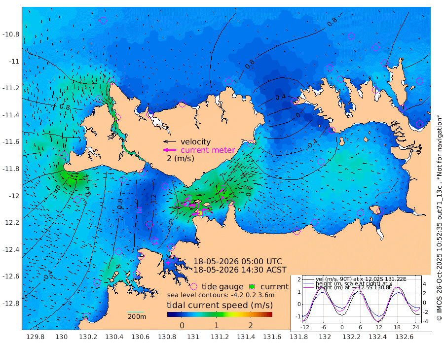 134cm/s -101T +4cm/s rms + 6cm/s 51T. Darwin_C1 52m 117cm/s -91T +4cm/s rms + 7cm/s -161T. Darwin_CW1 22m 56cm/s -107T +4cm/s rms + 8cm/s 61T. Darwin_CW2 34m 80cm/s -135T +3cm/s rms + 9cm/s 98T. Darwin_CW3 22m 105cm/s -90T +5cm/s rms + 7cm/s 88T. Darwin_C3 56m 65cm/s -116T +2cm/s rms + 9cm/s -126T. Darwin_CTbW 22m 20cm/s 109T +1cm/s rms + 1cm/s -47T. DARBGF 30m 26cm/s 145T +4cm/s rms + 3cm/s 80T. NRSDAR 19m 107cm Goodrich Bank -49cm Point Jenny -46cm Native Point -57cm Fish Reef -74cm Tapa Bay 47cm Point Fawcett (Offshore) -91cm Burge Point -77cm Munkunuwa -14cm Beagle A -102cm Parsons Bank -81cm Fenton Patches -109cm Hancox Shoal Area -110cm Nightcliff -113cm Darwin -73cm Charles Point Patches -98cm Glyde Point -117cm Chambers Bay -125cm Point Stuart -95cm Cape Hotham -107cm Christine Reef -145cm West Alligator Head -149cm East Field Island -84cm Two Hills Bay -76cm Camp Point -69cm Medina Inlet South 56cm South Barlow Point 79cm St. Asaph Bay 106cm Cape Van Dieman 103cm Snake Bay 102cm Cache Point 71cm Point Jahleel (Off) 14cm Cape Don 66cm Port Essington 64cm Smith Point - West 66cm NW Peacock Island 84cm North Of Jones Shoal 27cm Peacock Island 34cm Point David 61cm D'urville Point 26cm Copeland Island 40cm One Tree Point