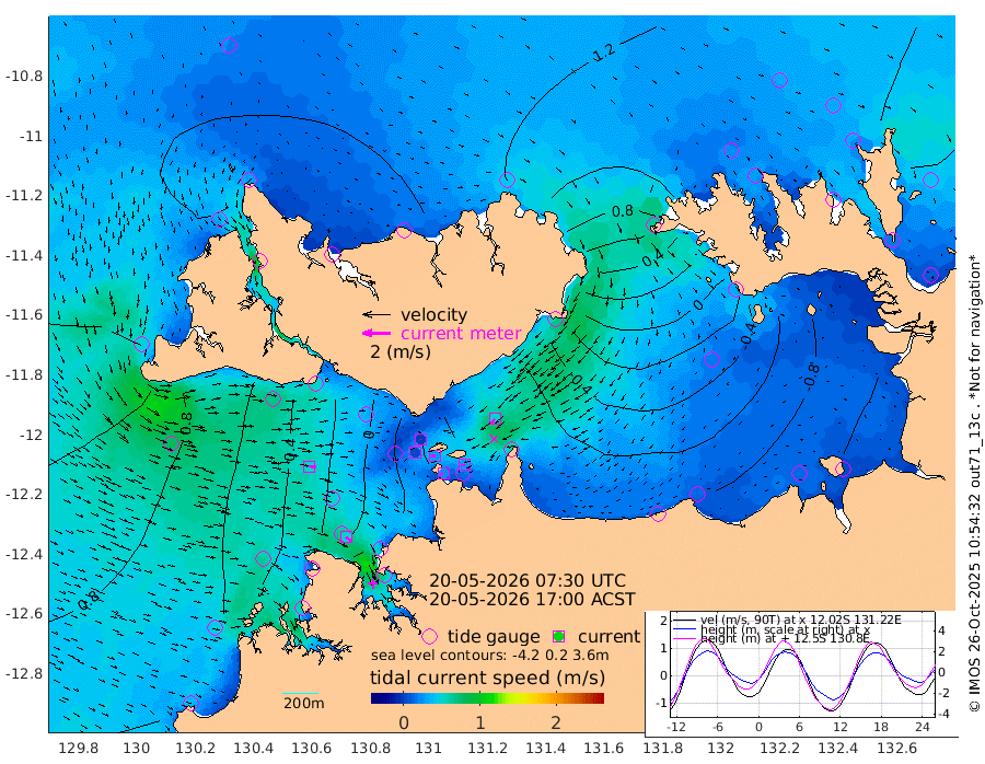 25cm/s -100T +4cm/s rms + 6cm/s 51T. Darwin_C1 52m 28cm/s -90T +4cm/s rms + 7cm/s -161T. Darwin_CW1 22m 2cm/s -136T +4cm/s rms + 8cm/s 61T. Darwin_CW2 34m 50cm/s -139T +3cm/s rms + 9cm/s 98T. Darwin_CW3 22m 27cm/s -89T +5cm/s rms + 7cm/s 88T. Darwin_C3 56m 2cm/s 36T +2cm/s rms + 9cm/s -126T. Darwin_CTbW 22m 51cm/s 96T +1cm/s rms + 1cm/s -47T. DARBGF 30m 52cm/s 129T +4cm/s rms + 3cm/s 80T. NRSDAR 19m 112cm Goodrich Bank 49cm Point Jenny 53cm Native Point 47cm Fish Reef 39cm Tapa Bay 103cm Point Fawcett (Offshore) 27cm Burge Point 41cm Munkunuwa 65cm Beagle A 21cm Parsons Bank 26cm Fenton Patches 5cm Hancox Shoal Area 8cm Nightcliff 17cm Darwin 49cm Charles Point Patches -27cm Glyde Point -100cm Chambers Bay -113cm Point Stuart -47cm Cape Hotham -89cm Christine Reef -138cm West Alligator Head -164cm East Field Island -59cm Two Hills Bay -47cm Camp Point 46cm Medina Inlet South 110cm South Barlow Point 112cm St. Asaph Bay 117cm Cape Van Dieman 119cm Snake Bay 109cm Cache Point 85cm Point Jahleel (Off) 47cm Cape Don 91cm Port Essington 87cm Smith Point - West 87cm NW Peacock Island 98cm North Of Jones Shoal 34cm Peacock Island 68cm Point David 87cm D'urville Point 61cm Copeland Island 72cm One Tree Point