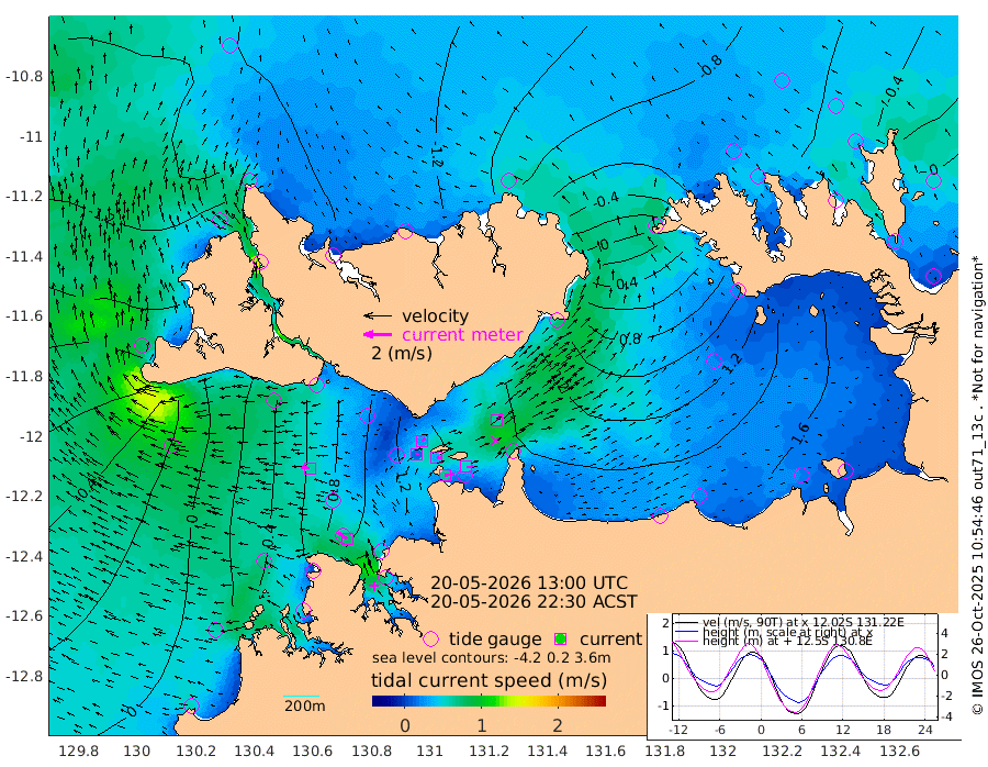 67cm/s 81T +4cm/s rms + 6cm/s 51T. Darwin_C1 52m 50cm/s 90T +4cm/s rms + 7cm/s -161T. Darwin_CW1 22m 14cm/s 55T +4cm/s rms + 8cm/s 61T. Darwin_CW2 34m 63cm/s 42T +3cm/s rms + 9cm/s 98T. Darwin_CW3 22m 34cm/s 92T +5cm/s rms + 7cm/s 88T. Darwin_C3 56m 28cm/s 63T +2cm/s rms + 9cm/s -126T. Darwin_CTbW 22m 61cm/s -85T +1cm/s rms + 1cm/s -47T. DARBGF 30m 74cm/s -54T +4cm/s rms + 3cm/s 80T. NRSDAR 19m -121cm Goodrich Bank -34cm Point Jenny -38cm Native Point -24cm Fish Reef -12cm Tapa Bay -109cm Point Fawcett (Offshore) 4cm Burge Point -29cm Munkunuwa -61cm Beagle A 27cm Parsons Bank 0cm Fenton Patches 42cm Hancox Shoal Area 21cm Nightcliff 38cm Darwin -1cm Charles Point Patches 79cm Glyde Point 144cm Chambers Bay 169cm Point Stuart 98cm Cape Hotham 125cm Christine Reef 192cm West Alligator Head 219cm East Field Island 108cm Two Hills Bay 96cm Camp Point -20cm Medina Inlet South -110cm South Barlow Point -127cm St. Asaph Bay -123cm Cape Van Dieman -117cm Snake Bay -112cm Cache Point -79cm Point Jahleel (Off) -12cm Cape Don -57cm Port Essington -59cm Smith Point - West -49cm NW Peacock Island -81cm North Of Jones Shoal -24cm Peacock Island 9cm Point David -44cm D'urville Point 20cm Copeland Island -5cm One Tree Point