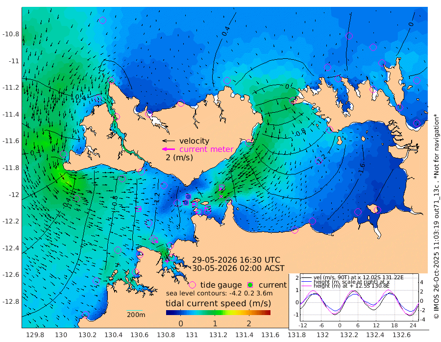 47cm/s -101T +4cm/s rms + 6cm/s 51T. Darwin_C1 52m 56cm/s -91T +4cm/s rms + 7cm/s -161T. Darwin_CW1 22m 4cm/s -97T +4cm/s rms + 8cm/s 61T. Darwin_CW2 34m 63cm/s -142T +3cm/s rms + 9cm/s 98T. Darwin_CW3 22m 39cm/s -86T +5cm/s rms + 7cm/s 88T. Darwin_C3 56m 5cm/s -107T +2cm/s rms + 9cm/s -126T. Darwin_CTbW 22m 53cm/s 98T +1cm/s rms + 1cm/s -47T. DARBGF 30m 60cm/s 127T +4cm/s rms + 3cm/s 80T. NRSDAR 19m 42cm Goodrich Bank -24cm Point Jenny -22cm Native Point -43cm Fish Reef -38cm Tapa Bay 26cm Point Fawcett (Offshore) -73cm Burge Point -22cm Munkunuwa -16cm Beagle A -66cm Parsons Bank -62cm Fenton Patches -73cm Hancox Shoal Area -64cm Nightcliff -94cm Darwin -67cm Charles Point Patches -116cm Glyde Point -153cm Chambers Bay -183cm Point Stuart -126cm Cape Hotham -144cm Christine Reef -203cm West Alligator Head -233cm East Field Island -132cm Two Hills Bay -129cm Camp Point -45cm Medina Inlet South 32cm South Barlow Point 45cm St. Asaph Bay 47cm Cape Van Dieman 40cm Snake Bay 35cm Cache Point 16cm Point Jahleel (Off) -34cm Cape Don 6cm Port Essington 14cm Smith Point - West 8cm NW Peacock Island 21cm North Of Jones Shoal 6cm Peacock Island -20cm Point David 8cm D'urville Point -23cm Copeland Island -21cm One Tree Point