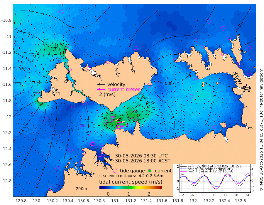 128cm/s 78T +4cm/s rms + 6cm/s 51T. Darwin_C1 52m 108cm/s 92T +4cm/s rms + 7cm/s -161T. Darwin_CW1 22m 67cm/s 73T +4cm/s rms + 8cm/s 61T. Darwin_CW2 34m 77cm/s 43T +3cm/s rms + 9cm/s 98T. Darwin_CW3 22m 116cm/s 89T +5cm/s rms + 7cm/s 88T. Darwin_C3 56m 58cm/s 65T +2cm/s rms + 9cm/s -126T. Darwin_CTbW 22m 9cm/s 56T +1cm/s rms + 1cm/s -47T. DARBGF 30m 6cm/s 41T +4cm/s rms + 3cm/s 80T. NRSDAR 19m -34cm Goodrich Bank 102cm Point Jenny 100cm Native Point 125cm Fish Reef 124cm Tapa Bay 31cm Point Fawcett (Offshore) 145cm Burge Point 118cm Munkunuwa 81cm Beagle A 151cm Parsons Bank 134cm Fenton Patches 144cm Hancox Shoal Area 146cm Nightcliff 173cm Darwin 147cm Charles Point Patches 132cm Glyde Point 104cm Chambers Bay 115cm Point Stuart 115cm Cape Hotham 90cm Christine Reef 121cm West Alligator Head 115cm East Field Island 97cm Two Hills Bay 94cm Camp Point 131cm Medina Inlet South 25cm South Barlow Point -6cm St. Asaph Bay -30cm Cape Van Dieman -20cm Snake Bay -26cm Cache Point -6cm Point Jahleel (Off) 47cm Cape Don 15cm Port Essington 9cm Smith Point - West 11cm NW Peacock Island -7cm North Of Jones Shoal 1cm Peacock Island 45cm Point David 18cm D'urville Point 48cm Copeland Island 42cm One Tree Point