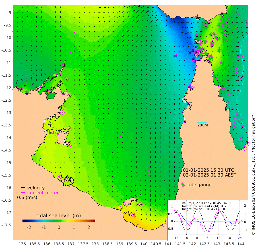24cm/s 43T +3cm/s rms + 7cm/s -42T. ARA-GOC87 57m 27cm/s 4T +3cm/s rms + 2cm/s -2T. ARA-GOC87 60m 29cm/s 44T +2cm/s rms + 3cm/s 61T. ARA-GOC87 47m 1cm Daru 1cm Bobo Island -49cm Meer Island Barge -34cm Bramble Cay -15cm Unnamed Cay -17cm Pearce Cay -27cm Stephens Island -15cm Merrie England Shoals 2cm Mutacomal Reef -25cm Darnley Island Barge -54cm East Cay -9cm Yorke Island Barge -17cm Rennel Island -7cm Aureed Island -13cm Dungeness Reef 12cm Zagai Island -6cm Yam Island -24cm Dauan Island -4cm Saibai Island -24cm Phipi Reef 2cm Warrior Reef - West -30cm Mabuiag Island Barge -16cm Half Way Island -3cm Coconut Island -13cm Dugong Islet -2cm Poll Island -14cm Kirkcaldie Reef -7cm Suarji Island 8cm Sue Islet -160cm Hawkesbury Island -28cm Alert Patches -22cm Twin Island -128cm Badu Island -14cm St Pauls (Moa Island) -121cm Kubin (Moa Island) -52cm Ince Point -74cm Thursday Island -68cm Nardana Patches -114cm Turtle Head -133cm Round Island -167cm Goods Island -190cm Booby Island -174cm White Rocks Area -152cm Carpentaria -22cm Papou Point -197cm Bampfield Head -160cm Crab Island -177cm Red Wallis Island -148cm Packe Island -4cm Harrington Reef -187cm Herald Camp 12cm Sharp Point -98cm Red Island Point -63cm Possession Island -2cm Alpha Rock -11cm Frederick Point 6cm Wyborn Reef Light 7cm Tetley Island -42cm Triangle Reef -11cm Turtle Head Island -56cm Maclennan Cay -66cm Raine Island -16cm Mcsweeny Reef -20cm Collette Reef -43cm Shadwell Reef -21cm Hannibal Island -38cm Round Point -145cm Vrilya Point -43cm Cape Grenville -51cm Hicks Island -65cm Sir Charles Hardy Island -14cm Harvey Island -53cm Kay Reef -61cm Rocky Island -64cm Chapman Island -64cm Ham Reef -60cm Jubilee Reef -55cm Night Island -65cm Unnamed Reef No. 3 -64cm Morris Island -71cm 1st 3 Mile Opening -67cm Creech Reef -53cm Fife Island -77cm Eden Reef -66cm Stanley Island -64cm Normanby River -36cm Yabooma Island -39cm Hutchison River -28cm Elcho Island -25cm North West Crocodile Island 17cm Cape Wessel 10cm Stevens Island 30cm Guluwuru Island -2cm Hopeful Bay 8cm Auster Point 2cm Two Island Bay 6cm Cadell Strait 130cm Mallison Island 30cm Melville Bay (Gove Harbour) 30cm Truant Island 31cm Cape Arnhem 49cm Cape Grey 52cm Hawk Island 81cm Milner Bay (Groote Eylandt) 70cm Cape Beatrice 92cm West Island 87cm Centre Island 64cm Mornington Island 69cm West Wellesley Islands 70cm Bountiful Island 98cm Albert River Mouth 141cm Sweers Island 82cm Karumba -2cm Nassau River Offshore -58cm Christmas Creek -97cm Archer River -110cm Boyd Point -131cm Weipa (Humbug Point) -98cm Pennefather River -143cm Cullen Point
