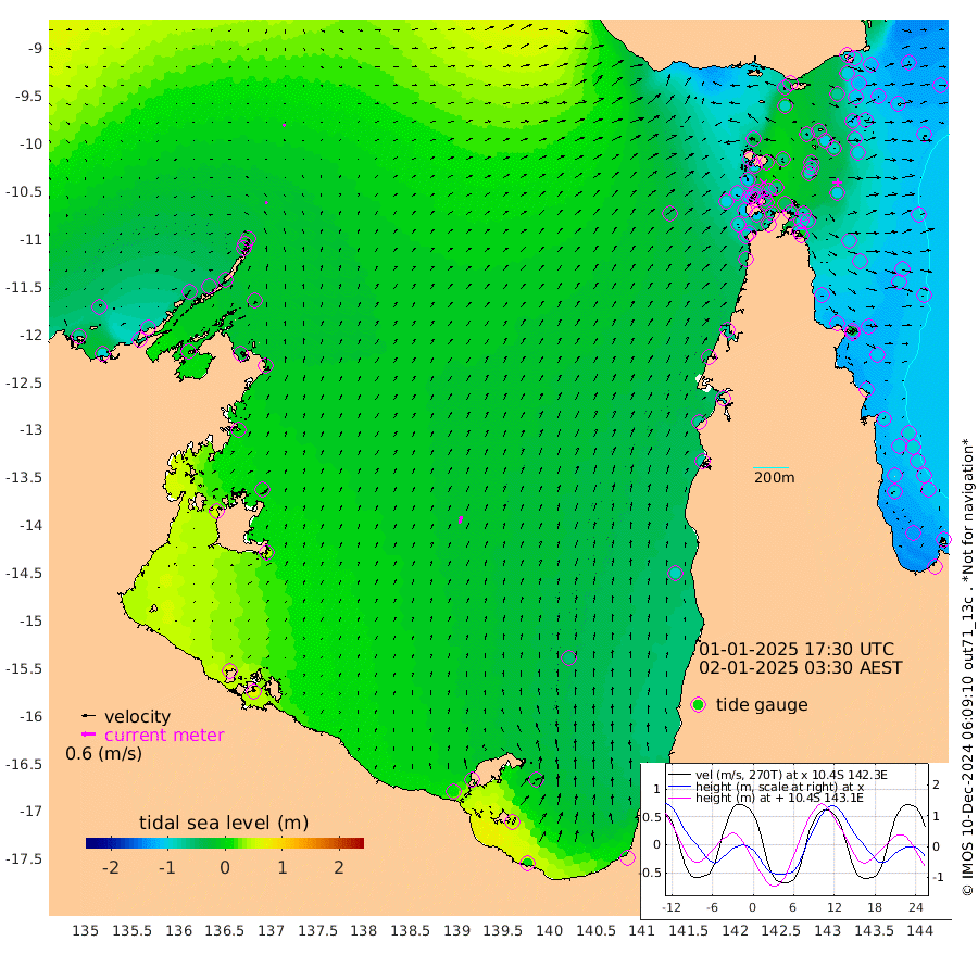 13cm/s 13T +3cm/s rms + 7cm/s -42T. ARA-GOC87 57m 33cm/s 15T +3cm/s rms + 2cm/s -2T. ARA-GOC87 60m 11cm/s 40T +2cm/s rms + 3cm/s 61T. ARA-GOC87 47m -98cm Daru -95cm Bobo Island -105cm Meer Island Barge -115cm Bramble Cay -113cm Unnamed Cay -112cm Pearce Cay -114cm Stephens Island -114cm Merrie England Shoals -101cm Mutacomal Reef -107cm Darnley Island Barge -113cm East Cay -97cm Yorke Island Barge -107cm Rennel Island -94cm Aureed Island -101cm Dungeness Reef -54cm Zagai Island -70cm Yam Island -60cm Dauan Island -33cm Saibai Island -85cm Phipi Reef -70cm Warrior Reef - West -36cm Mabuiag Island Barge -104cm Half Way Island -85cm Coconut Island -102cm Dugong Islet -76cm Poll Island -89cm Kirkcaldie Reef -62cm Suarji Island -61cm Sue Islet -112cm Hawkesbury Island -69cm Alert Patches -67cm Twin Island -91cm Badu Island -57cm St Pauls (Moa Island) -99cm Kubin (Moa Island) -68cm Ince Point -71cm Thursday Island -70cm Nardana Patches -97cm Turtle Head -100cm Round Island -112cm Goods Island -101cm Booby Island -99cm White Rocks Area -38cm Carpentaria -54cm Papou Point -108cm Bampfield Head -81cm Crab Island -95cm Red Wallis Island -112cm Packe Island -94cm Harrington Reef -127cm Herald Camp -3cm Sharp Point -79cm Red Island Point -75cm Possession Island -51cm Alpha Rock -76cm Frederick Point -88cm Wyborn Reef Light -81cm Tetley Island -90cm Triangle Reef -103cm Turtle Head Island -105cm Maclennan Cay -99cm Raine Island -101cm Mcsweeny Reef -101cm Collette Reef -98cm Shadwell Reef -113cm Hannibal Island -119cm Round Point -59cm Vrilya Point -111cm Cape Grenville -114cm Hicks Island -121cm Sir Charles Hardy Island -35cm Harvey Island -110cm Kay Reef -106cm Rocky Island -103cm Chapman Island -96cm Ham Reef -101cm Jubilee Reef -96cm Night Island -98cm Unnamed Reef No. 3 -110cm Morris Island -108cm 1st 3 Mile Opening -106cm Creech Reef -99cm Fife Island -128cm Eden Reef -113cm Stanley Island -120cm Normanby River -72cm Yabooma Island -90cm Hutchison River -61cm Elcho Island -58cm North West Crocodile Island -11cm Cape Wessel -39cm Stevens Island -30cm Guluwuru Island -42cm Hopeful Bay -27cm Auster Point -33cm Two Island Bay -64cm Cadell Strait 5cm Mallison Island -24cm Melville Bay (Gove Harbour) -21cm Truant Island -8cm Cape Arnhem 13cm Cape Grey 12cm Hawk Island 56cm Milner Bay (Groote Eylandt) 44cm Cape Beatrice 77cm West Island 75cm Centre Island 4cm Mornington Island 9cm West Wellesley Islands -12cm Bountiful Island 5cm Albert River Mouth 40cm Sweers Island -9cm Karumba -53cm Nassau River Offshore -84cm Christmas Creek -82cm Archer River -73cm Boyd Point -95cm Weipa (Humbug Point) -52cm Pennefather River -69cm Cullen Point