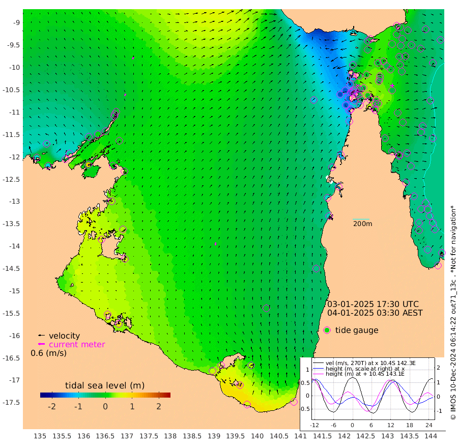 20cm/s 27T +3cm/s rms + 7cm/s -42T. ARA-GOC87 57m 27cm/s 12T +3cm/s rms + 2cm/s -2T. ARA-GOC87 60m 22cm/s 32T +2cm/s rms + 3cm/s 61T. ARA-GOC87 47m -16cm Daru -17cm Bobo Island -48cm Meer Island Barge -44cm Bramble Cay -29cm Unnamed Cay -37cm Pearce Cay -37cm Stephens Island -29cm Merrie England Shoals -19cm Mutacomal Reef -31cm Darnley Island Barge -55cm East Cay -20cm Yorke Island Barge -32cm Rennel Island -22cm Aureed Island -31cm Dungeness Reef -5cm Zagai Island -26cm Yam Island -42cm Dauan Island -17cm Saibai Island -43cm Phipi Reef -20cm Warrior Reef - West -39cm Mabuiag Island Barge -32cm Half Way Island -18cm Coconut Island -31cm Dugong Islet -23cm Poll Island -30cm Kirkcaldie Reef -22cm Suarji Island -6cm Sue Islet -156cm Hawkesbury Island -37cm Alert Patches -36cm Twin Island -128cm Badu Island -29cm St Pauls (Moa Island) -121cm Kubin (Moa Island) -60cm Ince Point -77cm Thursday Island -72cm Nardana Patches -114cm Turtle Head -120cm Round Island -158cm Goods Island -169cm Booby Island -164cm White Rocks Area -112cm Carpentaria -35cm Papou Point -157cm Bampfield Head -140cm Crab Island -164cm Red Wallis Island -146cm Packe Island -20cm Harrington Reef -165cm Herald Camp 8cm Sharp Point -100cm Red Island Point -60cm Possession Island -15cm Alpha Rock -26cm Frederick Point -12cm Wyborn Reef Light -11cm Tetley Island -45cm Triangle Reef -24cm Turtle Head Island -56cm Maclennan Cay -61cm Raine Island -26cm Mcsweeny Reef -28cm Collette Reef -42cm Shadwell Reef -30cm Hannibal Island -48cm Round Point -120cm Vrilya Point -46cm Cape Grenville -53cm Hicks Island -64cm Sir Charles Hardy Island -14cm Harvey Island -52cm Kay Reef -57cm Rocky Island -63cm Chapman Island -58cm Ham Reef -56cm Jubilee Reef -52cm Night Island -60cm Unnamed Reef No. 3 -60cm Morris Island -63cm 1st 3 Mile Opening -61cm Creech Reef -50cm Fife Island -74cm Eden Reef -60cm Stanley Island -64cm Normanby River -90cm Yabooma Island -98cm Hutchison River -77cm Elcho Island -78cm North West Crocodile Island -13cm Cape Wessel -40cm Stevens Island 6cm Guluwuru Island -42cm Hopeful Bay -25cm Auster Point -33cm Two Island Bay -52cm Cadell Strait 113cm Mallison Island 6cm Melville Bay (Gove Harbour) 7cm Truant Island 18cm Cape Arnhem 40cm Cape Grey 42cm Hawk Island 73cm Milner Bay (Groote Eylandt) 61cm Cape Beatrice 90cm West Island 88cm Centre Island 50cm Mornington Island 51cm West Wellesley Islands 42cm Bountiful Island 56cm Albert River Mouth 106cm Sweers Island 46cm Karumba -21cm Nassau River Offshore -65cm Christmas Creek -90cm Archer River -93cm Boyd Point -118cm Weipa (Humbug Point) -80cm Pennefather River -120cm Cullen Point