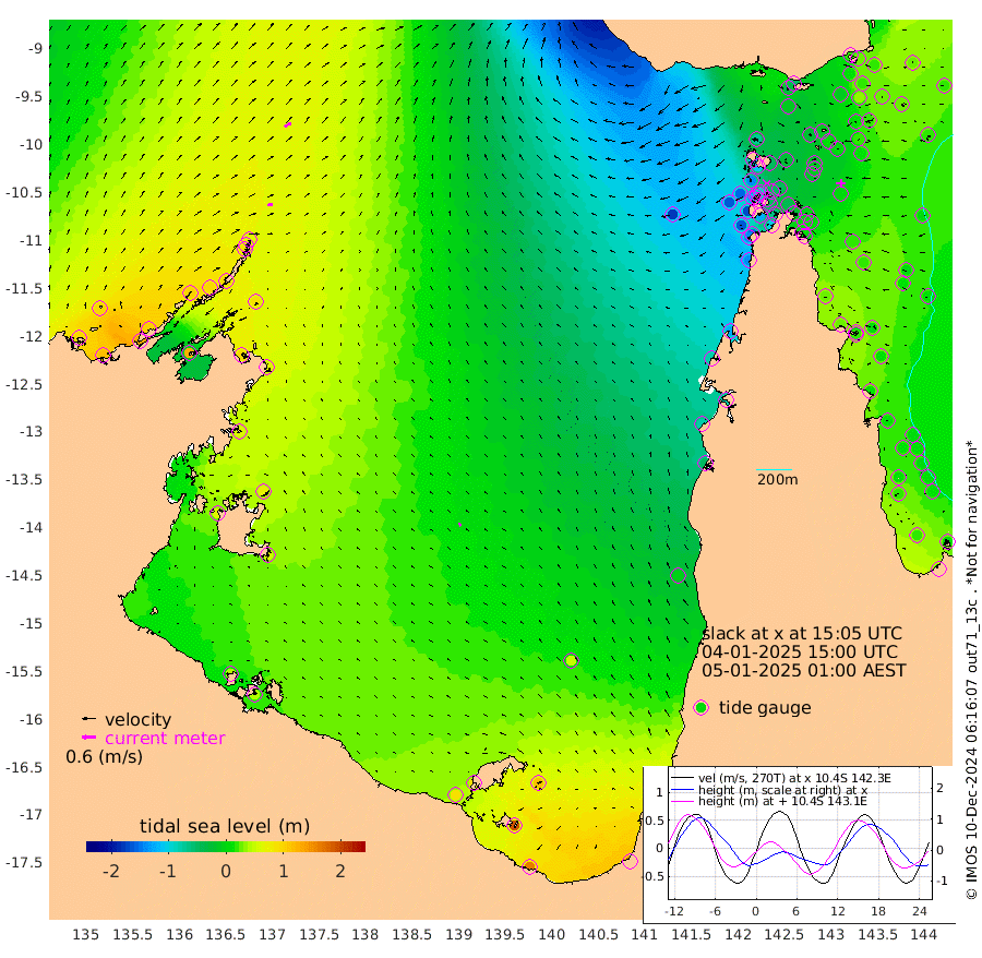 26cm/s 76T +3cm/s rms + 7cm/s -42T. ARA-GOC87 57m 16cm/s -42T +3cm/s rms + 2cm/s -2T. ARA-GOC87 60m 33cm/s 61T +2cm/s rms + 3cm/s 61T. ARA-GOC87 47m 19cm Daru 26cm Bobo Island 21cm Meer Island Barge 26cm Bramble Cay 21cm Unnamed Cay 31cm Pearce Cay 25cm Stephens Island 22cm Merrie England Shoals 10cm Mutacomal Reef 26cm Darnley Island Barge 17cm East Cay 22cm Yorke Island Barge 14cm Rennel Island 22cm Aureed Island 10cm Dungeness Reef -11cm Zagai Island -29cm Yam Island -36cm Dauan Island -48cm Saibai Island -12cm Phipi Reef -11cm Warrior Reef - West -72cm Mabuiag Island Barge 13cm Half Way Island 2cm Coconut Island 5cm Dugong Islet -10cm Poll Island -17cm Kirkcaldie Reef -29cm Suarji Island -16cm Sue Islet -142cm Hawkesbury Island -49cm Alert Patches -47cm Twin Island -117cm Badu Island -47cm St Pauls (Moa Island) -106cm Kubin (Moa Island) -71cm Ince Point -88cm Thursday Island -83cm Nardana Patches -99cm Turtle Head -114cm Round Island -132cm Goods Island -162cm Booby Island -152cm White Rocks Area -177cm Carpentaria -52cm Papou Point -168cm Bampfield Head -138cm Crab Island -159cm Red Wallis Island -123cm Packe Island 4cm Harrington Reef -151cm Herald Camp -12cm Sharp Point -99cm Red Island Point -65cm Possession Island -42cm Alpha Rock -25cm Frederick Point 7cm Wyborn Reef Light -1cm Tetley Island 7cm Triangle Reef 12cm Turtle Head Island 6cm Maclennan Cay 8cm Raine Island 20cm Mcsweeny Reef 20cm Collette Reef 15cm Shadwell Reef 27cm Hannibal Island 24cm Round Point -140cm Vrilya Point 13cm Cape Grenville 18cm Hicks Island 2cm Sir Charles Hardy Island 5cm Harvey Island 10cm Kay Reef 12cm Rocky Island 8cm Chapman Island 2cm Ham Reef 9cm Jubilee Reef 13cm Night Island 1cm Unnamed Reef No. 3 13cm Morris Island 10cm 1st 3 Mile Opening 9cm Creech Reef 22cm Fife Island 21cm Eden Reef 12cm Stanley Island 19cm Normanby River 92cm Yabooma Island 116cm Hutchison River 98cm Elcho Island 91cm North West Crocodile Island 65cm Cape Wessel 103cm Stevens Island 90cm Guluwuru Island 94cm Hopeful Bay 83cm Auster Point 82cm Two Island Bay 132cm Cadell Strait 123cm Mallison Island 92cm Melville Bay (Gove Harbour) 89cm Truant Island 67cm Cape Arnhem 65cm Cape Grey 70cm Hawk Island 64cm Milner Bay (Groote Eylandt) 58cm Cape Beatrice 43cm West Island 41cm Centre Island 88cm Mornington Island 84cm West Wellesley Islands 115cm Bountiful Island 160cm Albert River Mouth 194cm Sweers Island 149cm Karumba 50cm Nassau River Offshore -2cm Christmas Creek -49cm Archer River -78cm Boyd Point -77cm Weipa (Humbug Point) -79cm Pennefather River -127cm Cullen Point