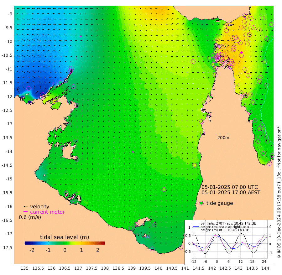 15cm/s -75T +3cm/s rms + 7cm/s -42T. ARA-GOC87 57m 29cm/s 163T +3cm/s rms + 2cm/s -2T. ARA-GOC87 60m 25cm/s -87T +2cm/s rms + 3cm/s 61T. ARA-GOC87 47m 80cm Daru 63cm Bobo Island 21cm Meer Island Barge 35cm Bramble Cay 60cm Unnamed Cay 46cm Pearce Cay 50cm Stephens Island 60cm Merrie England Shoals 80cm Mutacomal Reef 48cm Darnley Island Barge 25cm East Cay 61cm Yorke Island Barge 64cm Rennel Island 57cm Aureed Island 70cm Dungeness Reef 85cm Zagai Island 97cm Yam Island 91cm Dauan Island 96cm Saibai Island 79cm Phipi Reef 98cm Warrior Reef - West 72cm Mabuiag Island Barge 66cm Half Way Island 72cm Coconut Island 76cm Dugong Islet 79cm Poll Island 92cm Kirkcaldie Reef 73cm Suarji Island 88cm Sue Islet 47cm Hawkesbury Island 78cm Alert Patches 83cm Twin Island 44cm Badu Island 89cm St Pauls (Moa Island) 57cm Kubin (Moa Island) 75cm Ince Point 68cm Thursday Island 70cm Nardana Patches 55cm Turtle Head 43cm Round Island 33cm Goods Island 28cm Booby Island 22cm White Rocks Area 42cm Carpentaria 76cm Papou Point 20cm Bampfield Head 33cm Crab Island 39cm Red Wallis Island 57cm Packe Island 78cm Harrington Reef 55cm Herald Camp 36cm Sharp Point 55cm Red Island Point 55cm Possession Island 86cm Alpha Rock 83cm Frederick Point 76cm Wyborn Reef Light 81cm Tetley Island 28cm Triangle Reef 63cm Turtle Head Island 27cm Maclennan Cay 8cm Raine Island 55cm Mcsweeny Reef 49cm Collette Reef 28cm Shadwell Reef 49cm Hannibal Island 34cm Round Point 39cm Vrilya Point 36cm Cape Grenville 28cm Hicks Island 38cm Sir Charles Hardy Island 12cm Harvey Island 25cm Kay Reef 14cm Rocky Island 7cm Chapman Island 14cm Ham Reef 16cm Jubilee Reef 17cm Night Island 14cm Unnamed Reef No. 3 13cm Morris Island 7cm 1st 3 Mile Opening 15cm Creech Reef 20cm Fife Island 3cm Eden Reef 16cm Stanley Island 13cm Normanby River -175cm Yabooma Island -200cm Hutchison River -181cm Elcho Island -170cm North West Crocodile Island -95cm Cape Wessel -147cm Stevens Island -61cm Guluwuru Island -143cm Hopeful Bay -123cm Auster Point -113cm Two Island Bay -138cm Cadell Strait 77cm Mallison Island -72cm Melville Bay (Gove Harbour) -73cm Truant Island -44cm Cape Arnhem -42cm Cape Grey -41cm Hawk Island -43cm Milner Bay (Groote Eylandt) -29cm Cape Beatrice -8cm West Island -14cm Centre Island -1cm Mornington Island -2cm West Wellesley Islands -29cm Bountiful Island -62cm Albert River Mouth -92cm Sweers Island -47cm Karumba 28cm Nassau River Offshore 50cm Christmas Creek 33cm Archer River 40cm Boyd Point 30cm Weipa (Humbug Point) 31cm Pennefather River 42cm Cullen Point