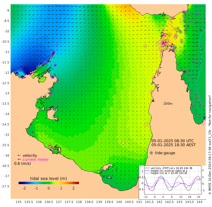 35cm/s -85T +3cm/s rms + 7cm/s -42T. ARA-GOC87 57m 21cm/s 169T +3cm/s rms + 2cm/s -2T. ARA-GOC87 60m 42cm/s -95T +2cm/s rms + 3cm/s 61T. ARA-GOC87 47m 14cm Daru -3cm Bobo Island -25cm Meer Island Barge -19cm Bramble Cay -3cm Unnamed Cay -16cm Pearce Cay -12cm Stephens Island 0cm Merrie England Shoals 20cm Mutacomal Reef -14cm Darnley Island Barge -22cm East Cay -3cm Yorke Island Barge 4cm Rennel Island -3cm Aureed Island 15cm Dungeness Reef 36cm Zagai Island 52cm Yam Island 58cm Dauan Island 62cm Saibai Island 54cm Phipi Reef 48cm Warrior Reef - West 58cm Mabuiag Island Barge 8cm Half Way Island 17cm Coconut Island 16cm Dugong Islet 31cm Poll Island 43cm Kirkcaldie Reef 38cm Suarji Island 36cm Sue Islet 64cm Hawkesbury Island 50cm Alert Patches 50cm Twin Island 57cm Badu Island 55cm St Pauls (Moa Island) 58cm Kubin (Moa Island) 58cm Ince Point 62cm Thursday Island 60cm Nardana Patches 59cm Turtle Head 54cm Round Island 55cm Goods Island 64cm Booby Island 55cm White Rocks Area 73cm Carpentaria 46cm Papou Point 44cm Bampfield Head 67cm Crab Island 74cm Red Wallis Island 73cm Packe Island 17cm Harrington Reef 77cm Herald Camp 28cm Sharp Point 61cm Red Island Point 42cm Possession Island 49cm Alpha Rock 37cm Frederick Point 12cm Wyborn Reef Light 20cm Tetley Island -11cm Triangle Reef -4cm Turtle Head Island -15cm Maclennan Cay -24cm Raine Island -5cm Mcsweeny Reef -7cm Collette Reef -15cm Shadwell Reef -11cm Hannibal Island -19cm Round Point 75cm Vrilya Point -11cm Cape Grenville -20cm Hicks Island -13cm Sir Charles Hardy Island -4cm Harvey Island -17cm Kay Reef -24cm Rocky Island -26cm Chapman Island -21cm Ham Reef -22cm Jubilee Reef -16cm Night Island -18cm Unnamed Reef No. 3 -25cm Morris Island -29cm 1st 3 Mile Opening -22cm Creech Reef -24cm Fife Island -38cm Eden Reef -23cm Stanley Island -31cm Normanby River -199cm Yabooma Island -235cm Hutchison River -200cm Elcho Island -184cm North West Crocodile Island -147cm Cape Wessel -185cm Stevens Island -142cm Guluwuru Island -171cm Hopeful Bay -166cm Auster Point -160cm Two Island Bay -205cm Cadell Strait -81cm Mallison Island -135cm Melville Bay (Gove Harbour) -144cm Truant Island -93cm Cape Arnhem -73cm Cape Grey -54cm Hawk Island -34cm Milner Bay (Groote Eylandt) -14cm Cape Beatrice 27cm West Island 28cm Centre Island 34cm Mornington Island 30cm West Wellesley Islands 11cm Bountiful Island -4cm Albert River Mouth -33cm Sweers Island 14cm Karumba 60cm Nassau River Offshore 72cm Christmas Creek 57cm Archer River 55cm Boyd Point 53cm Weipa (Humbug Point) 57cm Pennefather River 73cm Cullen Point