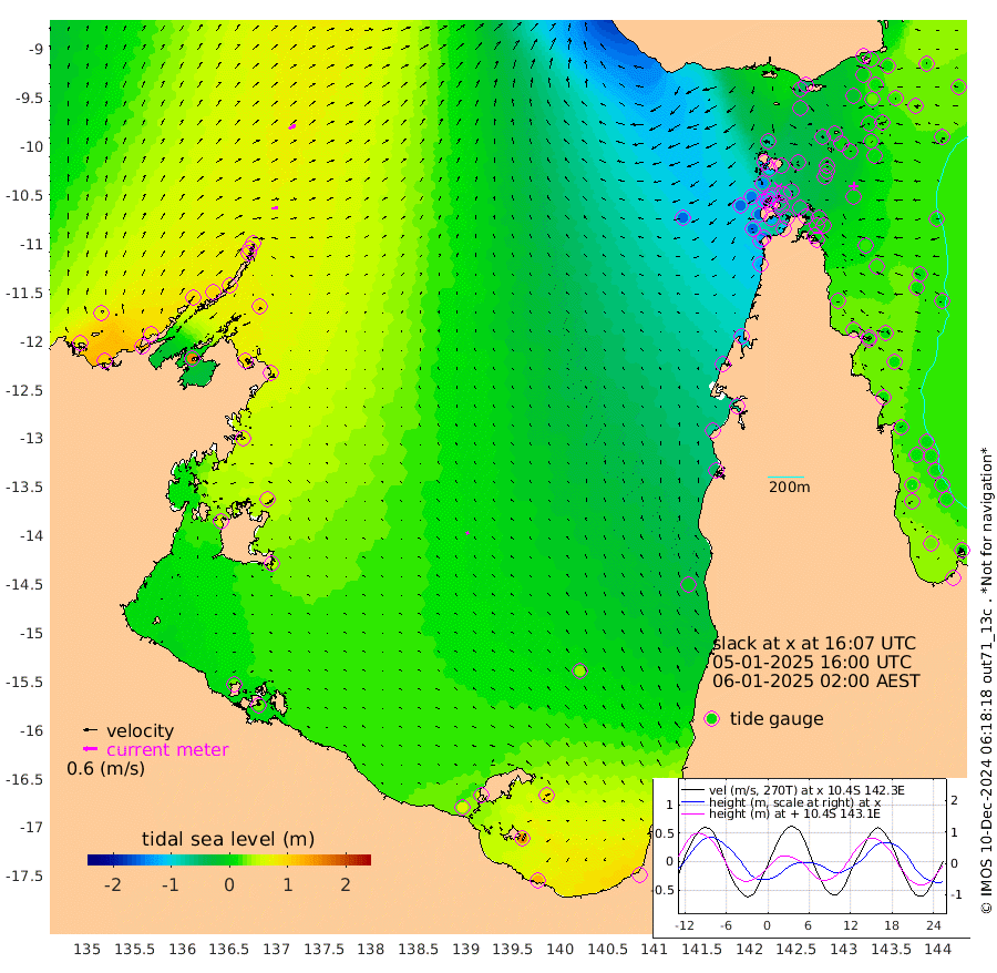 28cm/s 81T +3cm/s rms + 7cm/s -42T. ARA-GOC87 57m 12cm/s -40T +3cm/s rms + 2cm/s -2T. ARA-GOC87 60m 33cm/s 66T +2cm/s rms + 3cm/s 61T. ARA-GOC87 47m 11cm Daru 18cm Bobo Island 21cm Meer Island Barge 21cm Bramble Cay 13cm Unnamed Cay 23cm Pearce Cay 20cm Stephens Island 13cm Merrie England Shoals -1cm Mutacomal Reef 23cm Darnley Island Barge 16cm East Cay 16cm Yorke Island Barge 6cm Rennel Island 16cm Aureed Island 0cm Dungeness Reef -17cm Zagai Island -38cm Yam Island -39cm Dauan Island -50cm Saibai Island -23cm Phipi Reef -18cm Warrior Reef - West -74cm Mabuiag Island Barge 6cm Half Way Island -4cm Coconut Island -4cm Dugong Islet -19cm Poll Island -26cm Kirkcaldie Reef -38cm Suarji Island -22cm Sue Islet -141cm Hawkesbury Island -55cm Alert Patches -53cm Twin Island -114cm Badu Island -53cm St Pauls (Moa Island) -105cm Kubin (Moa Island) -74cm Ince Point -89cm Thursday Island -84cm Nardana Patches -98cm Turtle Head -113cm Round Island -127cm Goods Island -151cm Booby Island -146cm White Rocks Area -157cm Carpentaria -57cm Papou Point -155cm Bampfield Head -127cm Crab Island -151cm Red Wallis Island -120cm Packe Island -5cm Harrington Reef -148cm Herald Camp -15cm Sharp Point -101cm Red Island Point -69cm Possession Island -48cm Alpha Rock -31cm Frederick Point -1cm Wyborn Reef Light -9cm Tetley Island 7cm Triangle Reef 5cm Turtle Head Island 6cm Maclennan Cay 12cm Raine Island 15cm Mcsweeny Reef 16cm Collette Reef 15cm Shadwell Reef 22cm Hannibal Island 20cm Round Point -126cm Vrilya Point 10cm Cape Grenville 16cm Hicks Island 2cm Sir Charles Hardy Island 5cm Harvey Island 8cm Kay Reef 13cm Rocky Island 10cm Chapman Island 5cm Ham Reef 11cm Jubilee Reef 14cm Night Island 5cm Unnamed Reef No. 3 15cm Morris Island 13cm 1st 3 Mile Opening 12cm Creech Reef 27cm Fife Island 23cm Eden Reef 13cm Stanley Island 18cm Normanby River 75cm Yabooma Island 100cm Hutchison River 84cm Elcho Island 74cm North West Crocodile Island 65cm Cape Wessel 92cm Stevens Island 96cm Guluwuru Island 83cm Hopeful Bay 77cm Auster Point 77cm Two Island Bay 125cm Cadell Strait 151cm Mallison Island 93cm Melville Bay (Gove Harbour) 93cm Truant Island 72cm Cape Arnhem 63cm Cape Grey 63cm Hawk Island 54cm Milner Bay (Groote Eylandt) 47cm Cape Beatrice 29cm West Island 26cm Centre Island 67cm Mornington Island 63cm West Wellesley Islands 83cm Bountiful Island 122cm Albert River Mouth 155cm Sweers Island 111cm Karumba 32cm Nassau River Offshore -9cm Christmas Creek -47cm Archer River -70cm Boyd Point -71cm Weipa (Humbug Point) -69cm Pennefather River -116cm Cullen Point