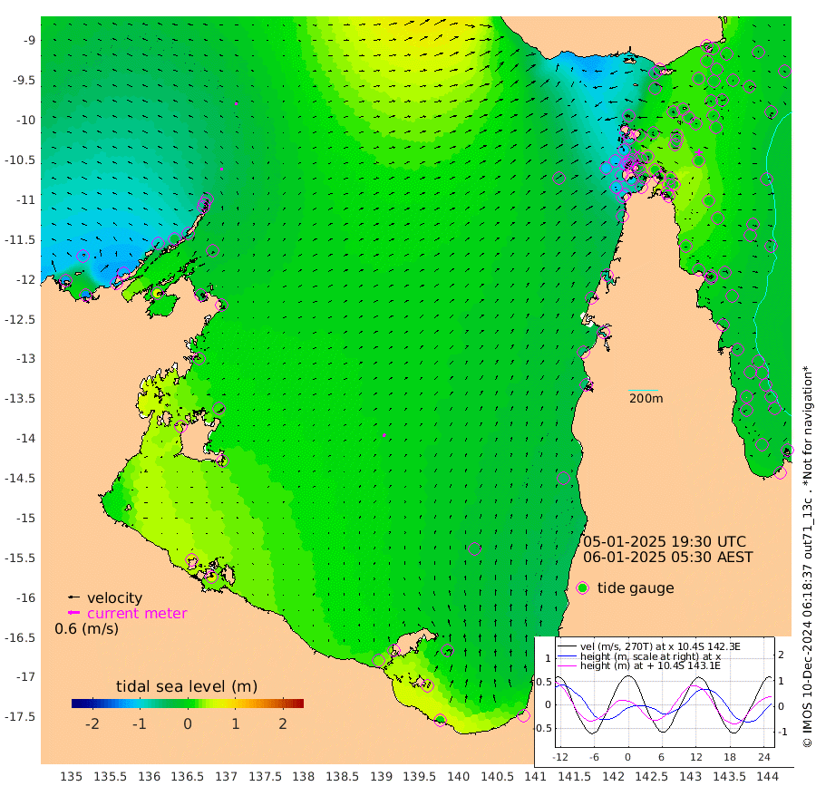 14cm/s -6T +3cm/s rms + 7cm/s -42T. ARA-GOC87 57m 19cm/s 23T +3cm/s rms + 2cm/s -2T. ARA-GOC87 60m 12cm/s -4T +2cm/s rms + 3cm/s 61T. ARA-GOC87 47m 4cm Daru 3cm Bobo Island -13cm Meer Island Barge -11cm Bramble Cay 2cm Unnamed Cay -14cm Pearce Cay -5cm Stephens Island 5cm Merrie England Shoals 4cm Mutacomal Reef 0cm Darnley Island Barge -18cm East Cay 5cm Yorke Island Barge -5cm Rennel Island 0cm Aureed Island -10cm Dungeness Reef -2cm Zagai Island -17cm Yam Island -50cm Dauan Island -27cm Saibai Island -42cm Phipi Reef -20cm Warrior Reef - West -34cm Mabuiag Island Barge -4cm Half Way Island 3cm Coconut Island -5cm Dugong Islet -9cm Poll Island -8cm Kirkcaldie Reef -8cm Suarji Island 6cm Sue Islet -110cm Hawkesbury Island -15cm Alert Patches -17cm Twin Island -95cm Badu Island -17cm St Pauls (Moa Island) -84cm Kubin (Moa Island) -37cm Ince Point -49cm Thursday Island -46cm Nardana Patches -75cm Turtle Head -73cm Round Island -105cm Goods Island -106cm Booby Island -108cm White Rocks Area -45cm Carpentaria -20cm Papou Point -79cm Bampfield Head -88cm Crab Island -107cm Red Wallis Island -98cm Packe Island 6cm Harrington Reef -103cm Herald Camp 6cm Sharp Point -69cm Red Island Point -28cm Possession Island -1cm Alpha Rock -7cm Frederick Point 9cm Wyborn Reef Light 7cm Tetley Island -17cm Triangle Reef 4cm Turtle Head Island -19cm Maclennan Cay -25cm Raine Island 2cm Mcsweeny Reef 3cm Collette Reef -9cm Shadwell Reef 4cm Hannibal Island -13cm Round Point -67cm Vrilya Point -7cm Cape Grenville -17cm Hicks Island -24cm Sir Charles Hardy Island -3cm Harvey Island -11cm Kay Reef -21cm Rocky Island -28cm Chapman Island -22cm Ham Reef -20cm Jubilee Reef -17cm Night Island -23cm Unnamed Reef No. 3 -20cm Morris Island -21cm 1st 3 Mile Opening -21cm Creech Reef -20cm Fife Island -29cm Eden Reef -18cm Stanley Island -24cm Normanby River -133cm Yabooma Island -140cm Hutchison River -116cm Elcho Island -120cm North West Crocodile Island -48cm Cape Wessel -87cm Stevens Island -23cm Guluwuru Island -81cm Hopeful Bay -61cm Auster Point -70cm Two Island Bay -109cm Cadell Strait 64cm Mallison Island -25cm Melville Bay (Gove Harbour) -25cm Truant Island -5cm Cape Arnhem 18cm Cape Grey 22cm Hawk Island 48cm Milner Bay (Groote Eylandt) 40cm Cape Beatrice 70cm West Island 74cm Centre Island 31cm Mornington Island 30cm West Wellesley Islands 11cm Bountiful Island 7cm Albert River Mouth 47cm Sweers Island 4cm Karumba -25cm Nassau River Offshore -47cm Christmas Creek -57cm Archer River -54cm Boyd Point -76cm Weipa (Humbug Point) -40cm Pennefather River -70cm Cullen Point