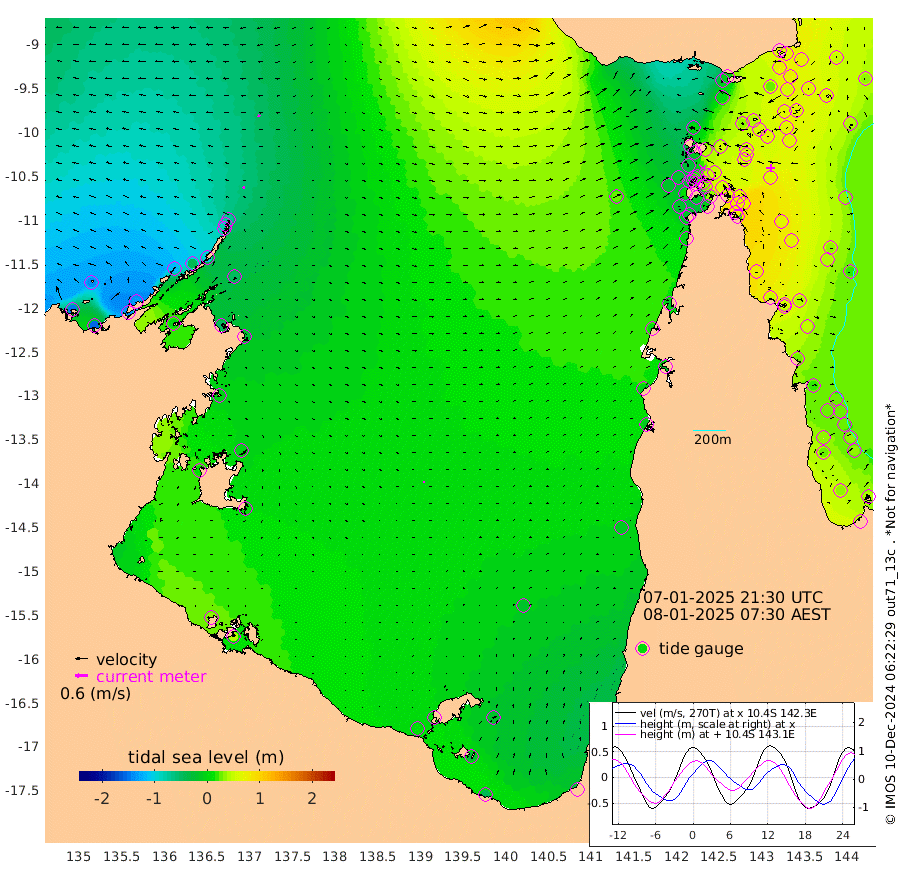 10cm/s -54T +3cm/s rms + 7cm/s -42T. ARA-GOC87 57m 8cm/s 73T +3cm/s rms + 2cm/s -2T. ARA-GOC87 60m 11cm/s -74T +2cm/s rms + 3cm/s 61T. ARA-GOC87 47m 65cm Daru 63cm Bobo Island 38cm Meer Island Barge 50cm Bramble Cay 70cm Unnamed Cay 54cm Pearce Cay 61cm Stephens Island 75cm Merrie England Shoals 73cm Mutacomal Reef 59cm Darnley Island Barge 37cm East Cay 63cm Yorke Island Barge 63cm Rennel Island 61cm Aureed Island 57cm Dungeness Reef 43cm Zagai Island 37cm Yam Island -14cm Dauan Island -1cm Saibai Island 5cm Phipi Reef 28cm Warrior Reef - West 6cm Mabuiag Island Barge 65cm Half Way Island 67cm Coconut Island 66cm Dugong Islet 53cm Poll Island 59cm Kirkcaldie Reef 54cm Suarji Island 58cm Sue Islet -27cm Hawkesbury Island 52cm Alert Patches 48cm Twin Island -23cm Badu Island 42cm St Pauls (Moa Island) -8cm Kubin (Moa Island) 28cm Ince Point 20cm Thursday Island 21cm Nardana Patches 2cm Turtle Head 1cm Round Island -18cm Goods Island -18cm Booby Island -18cm White Rocks Area 23cm Carpentaria 34cm Papou Point 12cm Bampfield Head -18cm Crab Island -21cm Red Wallis Island -11cm Packe Island 79cm Harrington Reef -16cm Herald Camp 17cm Sharp Point -4cm Red Island Point 37cm Possession Island 54cm Alpha Rock 59cm Frederick Point 73cm Wyborn Reef Light 69cm Tetley Island 32cm Triangle Reef 76cm Turtle Head Island 36cm Maclennan Cay 22cm Raine Island 63cm Mcsweeny Reef 61cm Collette Reef 41cm Shadwell Reef 68cm Hannibal Island 50cm Round Point -4cm Vrilya Point 55cm Cape Grenville 40cm Hicks Island 38cm Sir Charles Hardy Island 16cm Harvey Island 47cm Kay Reef 29cm Rocky Island 20cm Chapman Island 24cm Ham Reef 29cm Jubilee Reef 30cm Night Island 26cm Unnamed Reef No. 3 33cm Morris Island 32cm 1st 3 Mile Opening 32cm Creech Reef 24cm Fife Island 31cm Eden Reef 38cm Stanley Island 34cm Normanby River -148cm Yabooma Island -151cm Hutchison River -134cm Elcho Island -139cm North West Crocodile Island -71cm Cape Wessel -114cm Stevens Island -43cm Guluwuru Island -105cm Hopeful Bay -82cm Auster Point -94cm Two Island Bay -138cm Cadell Strait 7cm Mallison Island -48cm Melville Bay (Gove Harbour) -48cm Truant Island -24cm Cape Arnhem -6cm Cape Grey -2cm Hawk Island 12cm Milner Bay (Groote Eylandt) 11cm Cape Beatrice 37cm West Island 43cm Centre Island 10cm Mornington Island 11cm West Wellesley Islands -17cm Bountiful Island -39cm Albert River Mouth -23cm Sweers Island -39cm Karumba -17cm Nassau River Offshore -14cm Christmas Creek -12cm Archer River -4cm Boyd Point -20cm Weipa (Humbug Point) 6cm Pennefather River -11cm Cullen Point