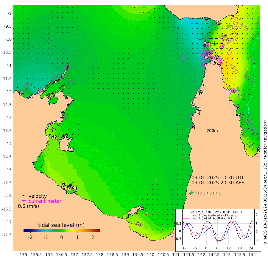 12cm/s -8T +3cm/s rms + 7cm/s -42T. ARA-GOC87 57m 7cm/s 23T +3cm/s rms + 2cm/s -2T. ARA-GOC87 60m 12cm/s -10T +2cm/s rms + 3cm/s 61T. ARA-GOC87 47m 54cm Daru 54cm Bobo Island 15cm Meer Island Barge 36cm Bramble Cay 54cm Unnamed Cay 44cm Pearce Cay 46cm Stephens Island 61cm Merrie England Shoals 66cm Mutacomal Reef 41cm Darnley Island Barge 21cm East Cay 48cm Yorke Island Barge 48cm Rennel Island 44cm Aureed Island 40cm Dungeness Reef 25cm Zagai Island 35cm Yam Island -33cm Dauan Island -17cm Saibai Island -18cm Phipi Reef 19cm Warrior Reef - West -25cm Mabuiag Island Barge 58cm Half Way Island 43cm Coconut Island 57cm Dugong Islet 39cm Poll Island 50cm Kirkcaldie Reef 12cm Suarji Island 41cm Sue Islet -70cm Hawkesbury Island 6cm Alert Patches 19cm Twin Island -79cm Badu Island 14cm St Pauls (Moa Island) -48cm Kubin (Moa Island) -10cm Ince Point -24cm Thursday Island -22cm Nardana Patches -54cm Turtle Head -59cm Round Island -86cm Goods Island -100cm Booby Island -90cm White Rocks Area -72cm Carpentaria 16cm Papou Point -110cm Bampfield Head -80cm Crab Island -85cm Red Wallis Island -58cm Packe Island 62cm Harrington Reef -73cm Herald Camp 16cm Sharp Point -31cm Red Island Point -14cm Possession Island 32cm Alpha Rock 36cm Frederick Point 54cm Wyborn Reef Light 52cm Tetley Island 10cm Triangle Reef 52cm Turtle Head Island 15cm Maclennan Cay -7cm Raine Island 43cm Mcsweeny Reef 38cm Collette Reef 13cm Shadwell Reef 46cm Hannibal Island 34cm Round Point -66cm Vrilya Point 34cm Cape Grenville 22cm Hicks Island 16cm Sir Charles Hardy Island 11cm Harvey Island 23cm Kay Reef 5cm Rocky Island -7cm Chapman Island -2cm Ham Reef 3cm Jubilee Reef 7cm Night Island -1cm Unnamed Reef No. 3 6cm Morris Island -8cm 1st 3 Mile Opening 2cm Creech Reef 3cm Fife Island 3cm Eden Reef 11cm Stanley Island 20cm Normanby River -68cm Yabooma Island -81cm Hutchison River -69cm Elcho Island -57cm North West Crocodile Island -30cm Cape Wessel -46cm Stevens Island -22cm Guluwuru Island -49cm Hopeful Bay -42cm Auster Point -28cm Two Island Bay -46cm Cadell Strait 30cm Mallison Island -28cm Melville Bay (Gove Harbour) -32cm Truant Island -20cm Cape Arnhem -4cm Cape Grey 5cm Hawk Island 23cm Milner Bay (Groote Eylandt) 27cm Cape Beatrice 54cm West Island 53cm Centre Island 39cm Mornington Island 38cm West Wellesley Islands 30cm Bountiful Island 31cm Albert River Mouth 35cm Sweers Island 36cm Karumba 19cm Nassau River Offshore -7cm Christmas Creek -41cm Archer River -52cm Boyd Point -66cm Weipa (Humbug Point) -45cm Pennefather River -64cm Cullen Point