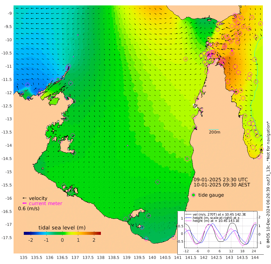 9cm/s -100T +3cm/s rms + 7cm/s -42T. ARA-GOC87 57m 17cm/s 154T +3cm/s rms + 2cm/s -2T. ARA-GOC87 60m 16cm/s -102T +2cm/s rms + 3cm/s 61T. ARA-GOC87 47m 135cm Daru 129cm Bobo Island 74cm Meer Island Barge 98cm Bramble Cay 133cm Unnamed Cay 125cm Pearce Cay 120cm Stephens Island 134cm Merrie England Shoals 145cm Mutacomal Reef 111cm Darnley Island Barge 78cm East Cay 124cm Yorke Island Barge 133cm Rennel Island 128cm Aureed Island 136cm Dungeness Reef 115cm Zagai Island 118cm Yam Island 71cm Dauan Island 68cm Saibai Island 89cm Phipi Reef 111cm Warrior Reef - West 77cm Mabuiag Island Barge 134cm Half Way Island 141cm Coconut Island 144cm Dugong Islet 133cm Poll Island 140cm Kirkcaldie Reef 141cm Suarji Island 129cm Sue Islet 64cm Hawkesbury Island 139cm Alert Patches 134cm Twin Island 64cm Badu Island 130cm St Pauls (Moa Island) 80cm Kubin (Moa Island) 113cm Ince Point 105cm Thursday Island 106cm Nardana Patches 92cm Turtle Head 78cm Round Island 70cm Goods Island 62cm Booby Island 68cm White Rocks Area 71cm Carpentaria 110cm Papou Point 85cm Bampfield Head 45cm Crab Island 62cm Red Wallis Island 80cm Packe Island 158cm Harrington Reef 67cm Herald Camp 37cm Sharp Point 72cm Red Island Point 111cm Possession Island 127cm Alpha Rock 141cm Frederick Point 144cm Wyborn Reef Light 142cm Tetley Island 74cm Triangle Reef 152cm Turtle Head Island 78cm Maclennan Cay 50cm Raine Island 123cm Mcsweeny Reef 113cm Collette Reef 77cm Shadwell Reef 122cm Hannibal Island 101cm Round Point 49cm Vrilya Point 99cm Cape Grenville 84cm Hicks Island 85cm Sir Charles Hardy Island 29cm Harvey Island 83cm Kay Reef 61cm Rocky Island 52cm Chapman Island 51cm Ham Reef 60cm Jubilee Reef 61cm Night Island 56cm Unnamed Reef No. 3 66cm Morris Island 65cm 1st 3 Mile Opening 65cm Creech Reef 56cm Fife Island 64cm Eden Reef 70cm Stanley Island 69cm Normanby River -147cm Yabooma Island -150cm Hutchison River -144cm Elcho Island -147cm North West Crocodile Island -82cm Cape Wessel -125cm Stevens Island -49cm Guluwuru Island -120cm Hopeful Bay -91cm Auster Point -105cm Two Island Bay -138cm Cadell Strait -27cm Mallison Island -57cm Melville Bay (Gove Harbour) -55cm Truant Island -32cm Cape Arnhem -23cm Cape Grey -21cm Hawk Island -24cm Milner Bay (Groote Eylandt) -17cm Cape Beatrice 0cm West Island 4cm Centre Island -10cm Mornington Island -3cm West Wellesley Islands -37cm Bountiful Island -77cm Albert River Mouth -83cm Sweers Island -72cm Karumba -3cm Nassau River Offshore 22cm Christmas Creek 28cm Archer River 40cm Boyd Point 30cm Weipa (Humbug Point) 42cm Pennefather River 39cm Cullen Point
