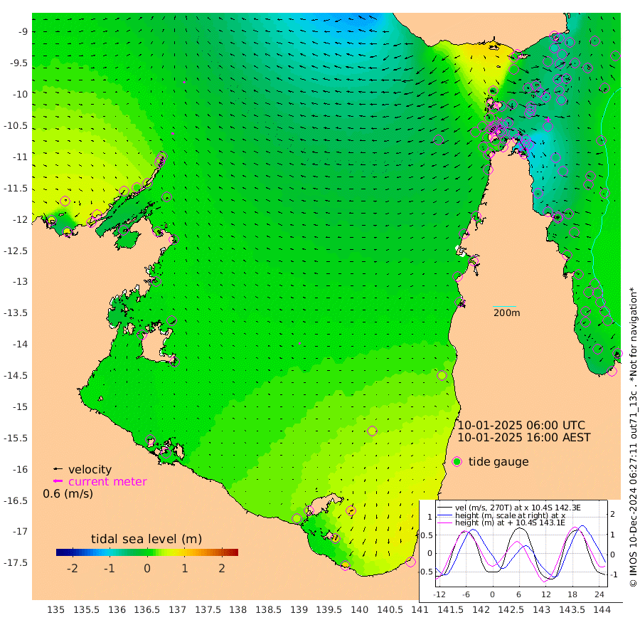 18cm/s -69T +3cm/s rms + 7cm/s -42T. ARA-GOC87 57m 12cm/s -101T +3cm/s rms + 2cm/s -2T. ARA-GOC87 60m 14cm/s -62T +2cm/s rms + 3cm/s 61T. ARA-GOC87 47m -65cm Daru -65cm Bobo Island -19cm Meer Island Barge -38cm Bramble Cay -61cm Unnamed Cay -64cm Pearce Cay -54cm Stephens Island -69cm Merrie England Shoals -75cm Mutacomal Reef -46cm Darnley Island Barge -17cm East Cay -57cm Yorke Island Barge -62cm Rennel Island -59cm Aureed Island -61cm Dungeness Reef -47cm Zagai Island -47cm Yam Island 6cm Dauan Island 1cm Saibai Island -3cm Phipi Reef -33cm Warrior Reef - West -22cm Mabuiag Island Barge -73cm Half Way Island -71cm Coconut Island -73cm Dugong Islet -67cm Poll Island -71cm Kirkcaldie Reef -54cm Suarji Island -63cm Sue Islet -10cm Hawkesbury Island -65cm Alert Patches -67cm Twin Island -9cm Badu Island -63cm St Pauls (Moa Island) -19cm Kubin (Moa Island) -49cm Ince Point -44cm Thursday Island -43cm Nardana Patches -22cm Turtle Head -6cm Round Island -6cm Goods Island -7cm Booby Island -12cm White Rocks Area -31cm Carpentaria -55cm Papou Point 2cm Bampfield Head -9cm Crab Island -12cm Red Wallis Island -17cm Packe Island -87cm Harrington Reef 17cm Herald Camp -21cm Sharp Point -23cm Red Island Point -41cm Possession Island -66cm Alpha Rock -73cm Frederick Point -77cm Wyborn Reef Light -77cm Tetley Island -20cm Triangle Reef -92cm Turtle Head Island -18cm Maclennan Cay 0cm Raine Island -57cm Mcsweeny Reef -47cm Collette Reef -19cm Shadwell Reef -54cm Hannibal Island -40cm Round Point -30cm Vrilya Point -36cm Cape Grenville -22cm Hicks Island -9cm Sir Charles Hardy Island -10cm Harvey Island -22cm Kay Reef -3cm Rocky Island 3cm Chapman Island 2cm Ham Reef -6cm Jubilee Reef -11cm Night Island -3cm Unnamed Reef No. 3 -8cm Morris Island -5cm 1st 3 Mile Opening -8cm Creech Reef -4cm Fife Island -4cm Eden Reef -12cm Stanley Island -13cm Normanby River 70cm Yabooma Island 73cm Hutchison River 65cm Elcho Island 65cm North West Crocodile Island 24cm Cape Wessel 40cm Stevens Island 17cm Guluwuru Island 52cm Hopeful Bay 29cm Auster Point 31cm Two Island Bay 46cm Cadell Strait -9cm Mallison Island 23cm Melville Bay (Gove Harbour) 18cm Truant Island 13cm Cape Arnhem 11cm Cape Grey 14cm Hawk Island 7cm Milner Bay (Groote Eylandt) 10cm Cape Beatrice -1cm West Island -3cm Centre Island 48cm Mornington Island 44cm West Wellesley Islands 93cm Bountiful Island 103cm Albert River Mouth 95cm Sweers Island 103cm Karumba 51cm Nassau River Offshore 42cm Christmas Creek 22cm Archer River 12cm Boyd Point 30cm Weipa (Humbug Point) -26cm Pennefather River -1cm Cullen Point