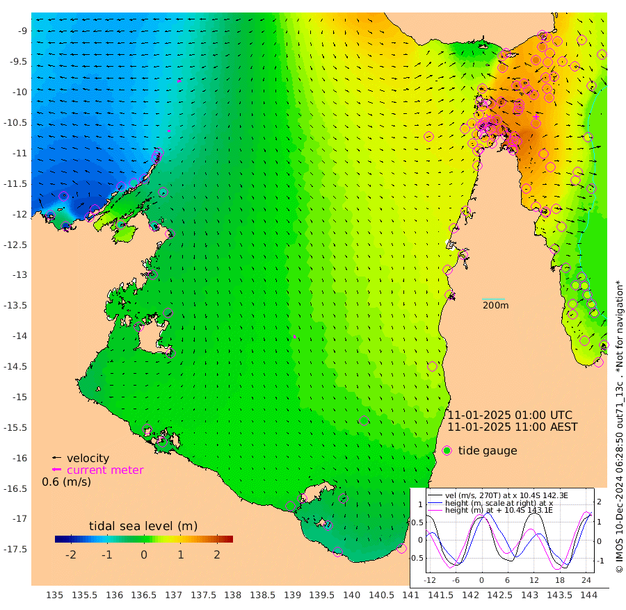 17cm/s -98T +3cm/s rms + 7cm/s -42T. ARA-GOC87 57m 24cm/s 164T +3cm/s rms + 2cm/s -2T. ARA-GOC87 60m 26cm/s -100T +2cm/s rms + 3cm/s 61T. ARA-GOC87 47m 145cm Daru 130cm Bobo Island 56cm Meer Island Barge 82cm Bramble Cay 126cm Unnamed Cay 124cm Pearce Cay 111cm Stephens Island 122cm Merrie England Shoals 150cm Mutacomal Reef 100cm Darnley Island Barge 60cm East Cay 123cm Yorke Island Barge 137cm Rennel Island 131cm Aureed Island 154cm Dungeness Reef 152cm Zagai Island 158cm Yam Island 140cm Dauan Island 129cm Saibai Island 150cm Phipi Reef 158cm Warrior Reef - West 132cm Mabuiag Island Barge 136cm Half Way Island 154cm Coconut Island 154cm Dugong Islet 161cm Poll Island 164cm Kirkcaldie Reef 184cm Suarji Island 156cm Sue Islet 116cm Hawkesbury Island 180cm Alert Patches 174cm Twin Island 120cm Badu Island 178cm St Pauls (Moa Island) 129cm Kubin (Moa Island) 160cm Ince Point 152cm Thursday Island 154cm Nardana Patches 142cm Turtle Head 122cm Round Island 116cm Goods Island 106cm Booby Island 112cm White Rocks Area 95cm Carpentaria 149cm Papou Point 123cm Bampfield Head 83cm Crab Island 107cm Red Wallis Island 128cm Packe Island 168cm Harrington Reef 117cm Herald Camp 53cm Sharp Point 114cm Red Island Point 148cm Possession Island 158cm Alpha Rock 168cm Frederick Point 152cm Wyborn Reef Light 157cm Tetley Island 67cm Triangle Reef 157cm Turtle Head Island 66cm Maclennan Cay 34cm Raine Island 119cm Mcsweeny Reef 104cm Collette Reef 64cm Shadwell Reef 108cm Hannibal Island 85cm Round Point 77cm Vrilya Point 81cm Cape Grenville 69cm Hicks Island 72cm Sir Charles Hardy Island 25cm Harvey Island 60cm Kay Reef 44cm Rocky Island 35cm Chapman Island 34cm Ham Reef 42cm Jubilee Reef 45cm Night Island 38cm Unnamed Reef No. 3 45cm Morris Island 47cm 1st 3 Mile Opening 46cm Creech Reef 39cm Fife Island 36cm Eden Reef 47cm Stanley Island 44cm Normanby River -164cm Yabooma Island -175cm Hutchison River -169cm Elcho Island -166cm North West Crocodile Island -104cm Cape Wessel -150cm Stevens Island -76cm Guluwuru Island -146cm Hopeful Bay -114cm Auster Point -128cm Two Island Bay -161cm Cadell Strait -74cm Mallison Island -78cm Melville Bay (Gove Harbour) -77cm Truant Island -47cm Cape Arnhem -36cm Cape Grey -33cm Hawk Island -36cm Milner Bay (Groote Eylandt) -25cm Cape Beatrice -5cm West Island -3cm Centre Island -6cm Mornington Island 4cm West Wellesley Islands -27cm Bountiful Island -74cm Albert River Mouth -89cm Sweers Island -64cm Karumba 15cm Nassau River Offshore 45cm Christmas Creek 48cm Archer River 63cm Boyd Point 56cm Weipa (Humbug Point) 59cm Pennefather River 70cm Cullen Point