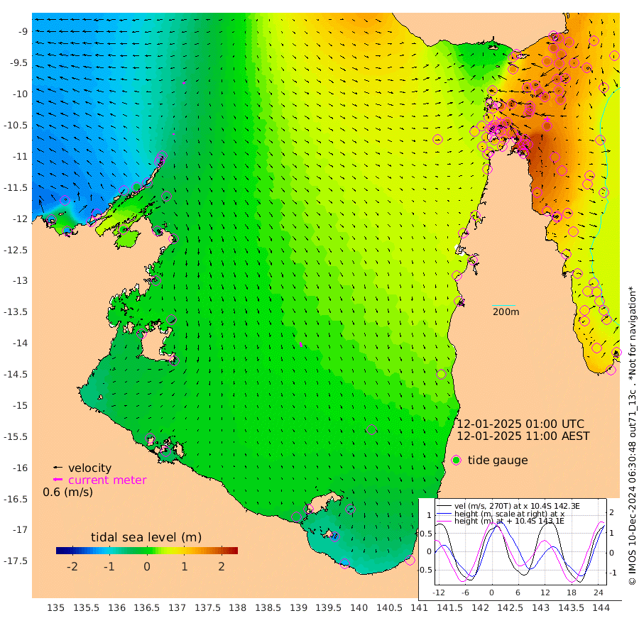 7cm/s -163T +3cm/s rms + 7cm/s -42T. ARA-GOC87 57m 32cm/s 164T +3cm/s rms + 2cm/s -2T. ARA-GOC87 60m 14cm/s -113T +2cm/s rms + 3cm/s 61T. ARA-GOC87 47m 182cm Daru 173cm Bobo Island 96cm Meer Island Barge 126cm Bramble Cay 167cm Unnamed Cay 171cm Pearce Cay 157cm Stephens Island 164cm Merrie England Shoals 185cm Mutacomal Reef 144cm Darnley Island Barge 103cm East Cay 163cm Yorke Island Barge 176cm Rennel Island 171cm Aureed Island 184cm Dungeness Reef 166cm Zagai Island 171cm Yam Island 136cm Dauan Island 124cm Saibai Island 147cm Phipi Reef 172cm Warrior Reef - West 122cm Mabuiag Island Barge 175cm Half Way Island 185cm Coconut Island 190cm Dugong Islet 183cm Poll Island 189cm Kirkcaldie Reef 189cm Suarji Island 175cm Sue Islet 111cm Hawkesbury Island 186cm Alert Patches 184cm Twin Island 111cm Badu Island 183cm St Pauls (Moa Island) 128cm Kubin (Moa Island) 160cm Ince Point 150cm Thursday Island 152cm Nardana Patches 138cm Turtle Head 111cm Round Island 110cm Goods Island 94cm Booby Island 101cm White Rocks Area 81cm Carpentaria 156cm Papou Point 107cm Bampfield Head 72cm Crab Island 97cm Red Wallis Island 125cm Packe Island 205cm Harrington Reef 104cm Herald Camp 50cm Sharp Point 114cm Red Island Point 148cm Possession Island 168cm Alpha Rock 190cm Frederick Point 186cm Wyborn Reef Light 187cm Tetley Island 100cm Triangle Reef 198cm Turtle Head Island 103cm Maclennan Cay 67cm Raine Island 159cm Mcsweeny Reef 143cm Collette Reef 98cm Shadwell Reef 151cm Hannibal Island 131cm Round Point 68cm Vrilya Point 121cm Cape Grenville 109cm Hicks Island 113cm Sir Charles Hardy Island 38cm Harvey Island 99cm Kay Reef 80cm Rocky Island 71cm Chapman Island 68cm Ham Reef 78cm Jubilee Reef 78cm Night Island 73cm Unnamed Reef No. 3 83cm Morris Island 81cm 1st 3 Mile Opening 83cm Creech Reef 80cm Fife Island 81cm Eden Reef 85cm Stanley Island 89cm Normanby River -133cm Yabooma Island -133cm Hutchison River -138cm Elcho Island -139cm North West Crocodile Island -67cm Cape Wessel -114cm Stevens Island -27cm Guluwuru Island -116cm Hopeful Bay -80cm Auster Point -89cm Two Island Bay -102cm Cadell Strait 6cm Mallison Island -39cm Melville Bay (Gove Harbour) -35cm Truant Island -20cm Cape Arnhem -24cm Cape Grey -30cm Hawk Island -52cm Milner Bay (Groote Eylandt) -42cm Cape Beatrice -39cm West Island -39cm Centre Island -33cm Mornington Island -23cm West Wellesley Islands -61cm Bountiful Island -116cm Albert River Mouth -136cm Sweers Island -105cm Karumba 1cm Nassau River Offshore 40cm Christmas Creek 46cm Archer River 61cm Boyd Point 52cm Weipa (Humbug Point) 55cm Pennefather River 59cm Cullen Point
