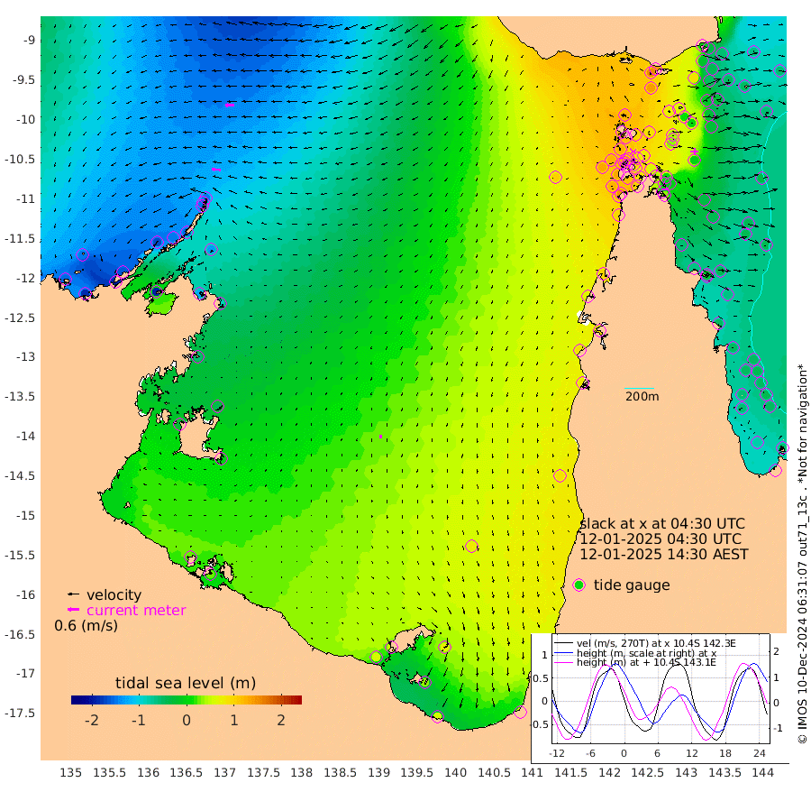 46cm/s -86T +3cm/s rms + 7cm/s -42T. ARA-GOC87 57m 19cm/s -168T +3cm/s rms + 2cm/s -2T. ARA-GOC87 60m 50cm/s -94T +2cm/s rms + 3cm/s 61T. ARA-GOC87 47m -7cm Daru -34cm Bobo Island -55cm Meer Island Barge -61cm Bramble Cay -40cm Unnamed Cay -45cm Pearce Cay -50cm Stephens Island -53cm Merrie England Shoals -18cm Mutacomal Reef -50cm Darnley Island Barge -59cm East Cay -30cm Yorke Island Barge -20cm Rennel Island -24cm Aureed Island 15cm Dungeness Reef 65cm Zagai Island 73cm Yam Island 154cm Dauan Island 136cm Saibai Island 141cm Phipi Reef 88cm Warrior Reef - West 126cm Mabuiag Island Barge -28cm Half Way Island 4cm Coconut Island -7cm Dugong Islet 37cm Poll Island 35cm Kirkcaldie Reef 90cm Suarji Island 42cm Sue Islet 124cm Hawkesbury Island 89cm Alert Patches 75cm Twin Island 137cm Badu Island 96cm St Pauls (Moa Island) 114cm Kubin (Moa Island) 103cm Ince Point 110cm Thursday Island 111cm Nardana Patches 124cm Turtle Head 120cm Round Island 125cm Goods Island 131cm Booby Island 121cm White Rocks Area 99cm Carpentaria 73cm Papou Point 130cm Bampfield Head 113cm Crab Island 125cm Red Wallis Island 119cm Packe Island -10cm Harrington Reef 144cm Herald Camp 35cm Sharp Point 100cm Red Island Point 89cm Possession Island 57cm Alpha Rock 40cm Frederick Point -12cm Wyborn Reef Light 1cm Tetley Island -31cm Triangle Reef -28cm Turtle Head Island -40cm Maclennan Cay -43cm Raine Island -35cm Mcsweeny Reef -39cm Collette Reef -39cm Shadwell Reef -54cm Hannibal Island -63cm Round Point 96cm Vrilya Point -54cm Cape Grenville -51cm Hicks Island -40cm Sir Charles Hardy Island -16cm Harvey Island -62cm Kay Reef -49cm Rocky Island -48cm Chapman Island -47cm Ham Reef -49cm Jubilee Reef -44cm Night Island -48cm Unnamed Reef No. 3 -56cm Morris Island -41cm 1st 3 Mile Opening -49cm Creech Reef -53cm Fife Island -76cm Eden Reef -59cm Stanley Island -77cm Normanby River -152cm Yabooma Island -182cm Hutchison River -161cm Elcho Island -150cm North West Crocodile Island -145cm Cape Wessel -169cm Stevens Island -143cm Guluwuru Island -151cm Hopeful Bay -145cm Auster Point -155cm Two Island Bay -191cm Cadell Strait -192cm Mallison Island -123cm Melville Bay (Gove Harbour) -132cm Truant Island -83cm Cape Arnhem -55cm Cape Grey -41cm Hawk Island -23cm Milner Bay (Groote Eylandt) -6cm Cape Beatrice 27cm West Island 27cm Centre Island 55cm Mornington Island 57cm West Wellesley Islands 70cm Bountiful Island 54cm Albert River Mouth 32cm Sweers Island 67cm Karumba 76cm Nassau River Offshore 89cm Christmas Creek 79cm Archer River 84cm Boyd Point 95cm Weipa (Humbug Point) 66cm Pennefather River 102cm Cullen Point