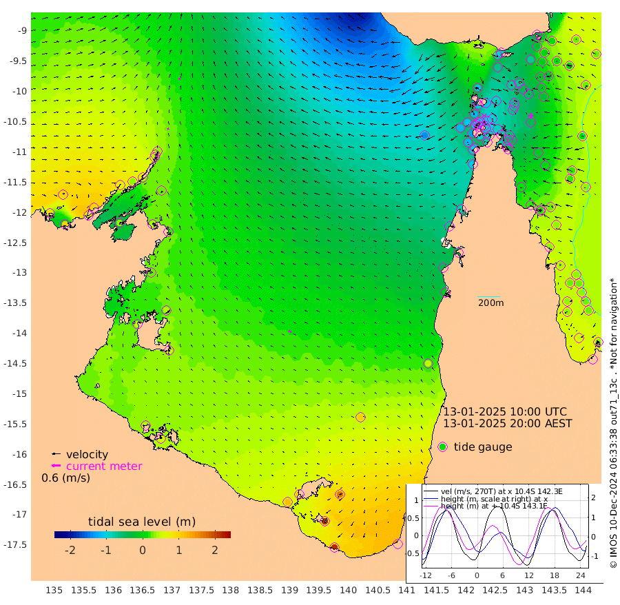 11cm/s -31T +3cm/s rms + 7cm/s -42T. ARA-GOC87 57m 20cm/s -64T +3cm/s rms + 2cm/s -2T. ARA-GOC87 60m 13cm/s 7T +2cm/s rms + 3cm/s 61T. ARA-GOC87 47m -31cm Daru -19cm Bobo Island 23cm Meer Island Barge 23cm Bramble Cay -5cm Unnamed Cay -9cm Pearce Cay 1cm Stephens Island 3cm Merrie England Shoals -24cm Mutacomal Reef 3cm Darnley Island Barge 30cm East Cay -18cm Yorke Island Barge -21cm Rennel Island -20cm Aureed Island -40cm Dungeness Reef -73cm Zagai Island -75cm Yam Island -93cm Dauan Island -92cm Saibai Island -64cm Phipi Reef -70cm Warrior Reef - West -109cm Mabuiag Island Barge -25cm Half Way Island -46cm Coconut Island -39cm Dugong Islet -65cm Poll Island -62cm Kirkcaldie Reef -87cm Suarji Island -72cm Sue Islet -119cm Hawkesbury Island -101cm Alert Patches -97cm Twin Island -113cm Badu Island -110cm St Pauls (Moa Island) -108cm Kubin (Moa Island) -107cm Ince Point -112cm Thursday Island -111cm Nardana Patches -103cm Turtle Head -103cm Round Island -104cm Goods Island -120cm Booby Island -109cm White Rocks Area -135cm Carpentaria -95cm Papou Point -131cm Bampfield Head -102cm Crab Island -114cm Red Wallis Island -99cm Packe Island -49cm Harrington Reef -106cm Herald Camp -32cm Sharp Point -89cm Red Island Point -97cm Possession Island -86cm Alpha Rock -77cm Frederick Point -44cm Wyborn Reef Light -55cm Tetley Island 6cm Triangle Reef -58cm Turtle Head Island 15cm Maclennan Cay 30cm Raine Island -11cm Mcsweeny Reef 1cm Collette Reef 17cm Shadwell Reef 9cm Hannibal Island 21cm Round Point -110cm Vrilya Point 21cm Cape Grenville 22cm Hicks Island 23cm Sir Charles Hardy Island 5cm Harvey Island 33cm Kay Reef 34cm Rocky Island 38cm Chapman Island 31cm Ham Reef 28cm Jubilee Reef 27cm Night Island 32cm Unnamed Reef No. 3 35cm Morris Island 24cm 1st 3 Mile Opening 29cm Creech Reef 32cm Fife Island 53cm Eden Reef 36cm Stanley Island 46cm Normanby River 85cm Yabooma Island 102cm Hutchison River 93cm Elcho Island 93cm North West Crocodile Island 33cm Cape Wessel 73cm Stevens Island 34cm Guluwuru Island 80cm Hopeful Bay 43cm Auster Point 43cm Two Island Bay 74cm Cadell Strait 36cm Mallison Island 38cm Melville Bay (Gove Harbour) 27cm Truant Island 21cm Cape Arnhem 29cm Cape Grey 43cm Hawk Island 49cm Milner Bay (Groote Eylandt) 56cm Cape Beatrice 52cm West Island 54cm Centre Island 119cm Mornington Island 113cm West Wellesley Islands 167cm Bountiful Island 215cm Albert River Mouth 216cm Sweers Island 204cm Karumba 99cm Nassau River Offshore 52cm Christmas Creek -1cm Archer River -43cm Boyd Point -25cm Weipa (Humbug Point) -65cm Pennefather River -85cm Cullen Point