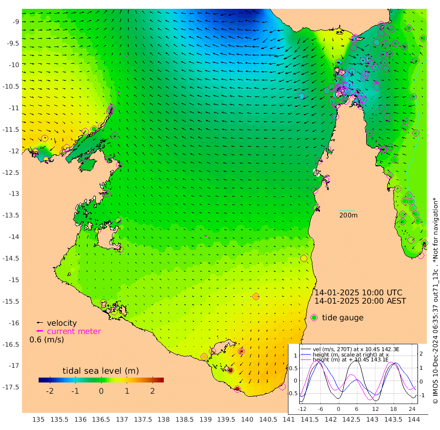 15cm/s -69T +3cm/s rms + 7cm/s -42T. ARA-GOC87 57m 20cm/s -75T +3cm/s rms + 2cm/s -2T. ARA-GOC87 60m 10cm/s -50T +2cm/s rms + 3cm/s 61T. ARA-GOC87 47m -55cm Daru -49cm Bobo Island 2cm Meer Island Barge -3cm Bramble Cay -32cm Unnamed Cay -38cm Pearce Cay -28cm Stephens Island -24cm Merrie England Shoals -48cm Mutacomal Reef -25cm Darnley Island Barge 7cm East Cay -45cm Yorke Island Barge -45cm Rennel Island -48cm Aureed Island -57cm Dungeness Reef -82cm Zagai Island -80cm Yam Island -75cm Dauan Island -79cm Saibai Island -46cm Phipi Reef -75cm Warrior Reef - West -86cm Mabuiag Island Barge -49cm Half Way Island -65cm Coconut Island -62cm Dugong Islet -77cm Poll Island -73cm Kirkcaldie Reef -89cm Suarji Island -83cm Sue Islet -72cm Hawkesbury Island -93cm Alert Patches -95cm Twin Island -66cm Badu Island -105cm St Pauls (Moa Island) -77cm Kubin (Moa Island) -90cm Ince Point -88cm Thursday Island -88cm Nardana Patches -69cm Turtle Head -69cm Round Island -56cm Goods Island -64cm Booby Island -59cm White Rocks Area -94cm Carpentaria -91cm Papou Point -85cm Bampfield Head -51cm Crab Island -63cm Red Wallis Island -62cm Packe Island -74cm Harrington Reef -64cm Herald Camp -31cm Sharp Point -57cm Red Island Point -84cm Possession Island -90cm Alpha Rock -87cm Frederick Point -68cm Wyborn Reef Light -76cm Tetley Island -10cm Triangle Reef -82cm Turtle Head Island -4cm Maclennan Cay 18cm Raine Island -37cm Mcsweeny Reef -22cm Collette Reef 1cm Shadwell Reef -18cm Hannibal Island -4cm Round Point -61cm Vrilya Point -2cm Cape Grenville 0cm Hicks Island 2cm Sir Charles Hardy Island -3cm Harvey Island 13cm Kay Reef 17cm Rocky Island 24cm Chapman Island 16cm Ham Reef 12cm Jubilee Reef 11cm Night Island 18cm Unnamed Reef No. 3 17cm Morris Island 11cm 1st 3 Mile Opening 13cm Creech Reef 11cm Fife Island 31cm Eden Reef 18cm Stanley Island 22cm Normanby River 70cm Yabooma Island 82cm Hutchison River 78cm Elcho Island 80cm North West Crocodile Island 1cm Cape Wessel 49cm Stevens Island -5cm Guluwuru Island 59cm Hopeful Bay 17cm Auster Point 13cm Two Island Bay 42cm Cadell Strait -30cm Mallison Island 5cm Melville Bay (Gove Harbour) -9cm Truant Island -5cm Cape Arnhem 10cm Cape Grey 27cm Hawk Island 38cm Milner Bay (Groote Eylandt) 49cm Cape Beatrice 49cm West Island 52cm Centre Island 121cm Mornington Island 115cm West Wellesley Islands 171cm Bountiful Island 222cm Albert River Mouth 215cm Sweers Island 214cm Karumba 113cm Nassau River Offshore 72cm Christmas Creek 29cm Archer River -13cm Boyd Point 10cm Weipa (Humbug Point) -29cm Pennefather River -43cm Cullen Point