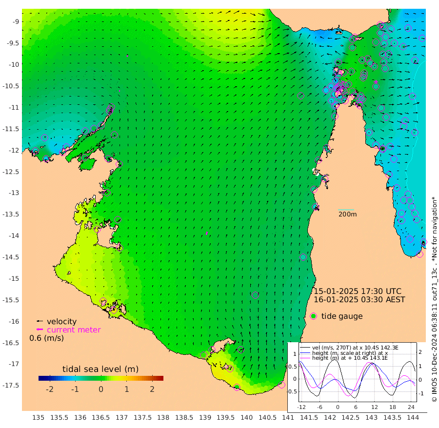 13cm/s 6T +3cm/s rms + 7cm/s -42T. ARA-GOC87 57m 32cm/s 16T +3cm/s rms + 2cm/s -2T. ARA-GOC87 60m 11cm/s 27T +2cm/s rms + 3cm/s 61T. ARA-GOC87 47m -70cm Daru -72cm Bobo Island -84cm Meer Island Barge -97cm Bramble Cay -87cm Unnamed Cay -89cm Pearce Cay -85cm Stephens Island -92cm Merrie England Shoals -80cm Mutacomal Reef -80cm Darnley Island Barge -97cm East Cay -69cm Yorke Island Barge -80cm Rennel Island -68cm Aureed Island -69cm Dungeness Reef -33cm Zagai Island -45cm Yam Island -48cm Dauan Island -34cm Saibai Island -67cm Phipi Reef -50cm Warrior Reef - West -37cm Mabuiag Island Barge -72cm Half Way Island -63cm Coconut Island -68cm Dugong Islet -51cm Poll Island -59cm Kirkcaldie Reef -38cm Suarji Island -41cm Sue Islet -120cm Hawkesbury Island -52cm Alert Patches -48cm Twin Island -101cm Badu Island -35cm St Pauls (Moa Island) -88cm Kubin (Moa Island) -54cm Ince Point -60cm Thursday Island -58cm Nardana Patches -89cm Turtle Head -88cm Round Island -114cm Goods Island -105cm Booby Island -107cm White Rocks Area -39cm Carpentaria -38cm Papou Point -98cm Bampfield Head -87cm Crab Island -103cm Red Wallis Island -106cm Packe Island -62cm Harrington Reef -111cm Herald Camp 3cm Sharp Point -86cm Red Island Point -54cm Possession Island -37cm Alpha Rock -54cm Frederick Point -67cm Wyborn Reef Light -61cm Tetley Island -79cm Triangle Reef -68cm Turtle Head Island -84cm Maclennan Cay -88cm Raine Island -77cm Mcsweeny Reef -82cm Collette Reef -84cm Shadwell Reef -91cm Hannibal Island -104cm Round Point -65cm Vrilya Point -93cm Cape Grenville -92cm Hicks Island -103cm Sir Charles Hardy Island -27cm Harvey Island -100cm Kay Reef -94cm Rocky Island -102cm Chapman Island -91cm Ham Reef -89cm Jubilee Reef -80cm Night Island -94cm Unnamed Reef No. 3 -96cm Morris Island -87cm 1st 3 Mile Opening -91cm Creech Reef -87cm Fife Island -113cm Eden Reef -97cm Stanley Island -106cm Normanby River -91cm Yabooma Island -108cm Hutchison River -81cm Elcho Island -80cm North West Crocodile Island -28cm Cape Wessel -62cm Stevens Island -32cm Guluwuru Island -65cm Hopeful Bay -39cm Auster Point -36cm Two Island Bay -80cm Cadell Strait -34cm Mallison Island -27cm Melville Bay (Gove Harbour) -24cm Truant Island -7cm Cape Arnhem 14cm Cape Grey 15cm Hawk Island 62cm Milner Bay (Groote Eylandt) 48cm Cape Beatrice 86cm West Island 86cm Centre Island 14cm Mornington Island 16cm West Wellesley Islands -7cm Bountiful Island 9cm Albert River Mouth 44cm Sweers Island -5cm Karumba -50cm Nassau River Offshore -81cm Christmas Creek -90cm Archer River -74cm Boyd Point -97cm Weipa (Humbug Point) -55cm Pennefather River -70cm Cullen Point