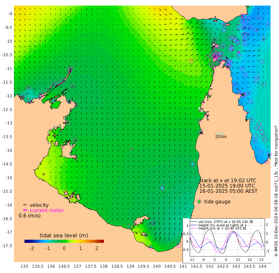7cm/s -51T +3cm/s rms + 7cm/s -42T. ARA-GOC87 57m 31cm/s 17T +3cm/s rms + 2cm/s -2T. ARA-GOC87 60m 2cm/s -158T +2cm/s rms + 3cm/s 61T. ARA-GOC87 47m -124cm Daru -127cm Bobo Island -94cm Meer Island Barge -119cm Bramble Cay -124cm Unnamed Cay -137cm Pearce Cay -122cm Stephens Island -127cm Merrie England Shoals -128cm Mutacomal Reef -113cm Darnley Island Barge -109cm East Cay -114cm Yorke Island Barge -123cm Rennel Island -121cm Aureed Island -118cm Dungeness Reef -86cm Zagai Island -90cm Yam Island -80cm Dauan Island -66cm Saibai Island -103cm Phipi Reef -107cm Warrior Reef - West -41cm Mabuiag Island Barge -115cm Half Way Island -113cm Coconut Island -116cm Dugong Islet -100cm Poll Island -103cm Kirkcaldie Reef -84cm Suarji Island -88cm Sue Islet -45cm Hawkesbury Island -76cm Alert Patches -80cm Twin Island -47cm Badu Island -70cm St Pauls (Moa Island) -50cm Kubin (Moa Island) -60cm Ince Point -50cm Thursday Island -52cm Nardana Patches -57cm Turtle Head -34cm Round Island -41cm Goods Island -10cm Booby Island -23cm White Rocks Area 47cm Carpentaria -61cm Papou Point 2cm Bampfield Head -6cm Crab Island -20cm Red Wallis Island -55cm Packe Island -117cm Harrington Reef -31cm Herald Camp -15cm Sharp Point -55cm Red Island Point -51cm Possession Island -70cm Alpha Rock -96cm Frederick Point -115cm Wyborn Reef Light -109cm Tetley Island -91cm Triangle Reef -110cm Turtle Head Island -93cm Maclennan Cay -82cm Raine Island -116cm Mcsweeny Reef -113cm Collette Reef -92cm Shadwell Reef -123cm Hannibal Island -125cm Round Point 14cm Vrilya Point -107cm Cape Grenville -106cm Hicks Island -111cm Sir Charles Hardy Island -32cm Harvey Island -103cm Kay Reef -93cm Rocky Island -97cm Chapman Island -84cm Ham Reef -87cm Jubilee Reef -84cm Night Island -89cm Unnamed Reef No. 3 -95cm Morris Island -80cm 1st 3 Mile Opening -89cm Creech Reef -98cm Fife Island -108cm Eden Reef -94cm Stanley Island -108cm Normanby River -42cm Yabooma Island -61cm Hutchison River -34cm Elcho Island -35cm North West Crocodile Island -22cm Cape Wessel -38cm Stevens Island -48cm Guluwuru Island -35cm Hopeful Bay -23cm Auster Point -19cm Two Island Bay -72cm Cadell Strait -102cm Mallison Island -41cm Melville Bay (Gove Harbour) -37cm Truant Island -25cm Cape Arnhem -7cm Cape Grey -9cm Hawk Island 32cm Milner Bay (Groote Eylandt) 18cm Cape Beatrice 46cm West Island 49cm Centre Island -41cm Mornington Island -40cm West Wellesley Islands -63cm Bountiful Island -53cm Albert River Mouth -31cm Sweers Island -64cm Karumba -83cm Nassau River Offshore -88cm Christmas Creek -58cm Archer River -33cm Boyd Point -47cm Weipa (Humbug Point) -6cm Pennefather River 0cm Cullen Point