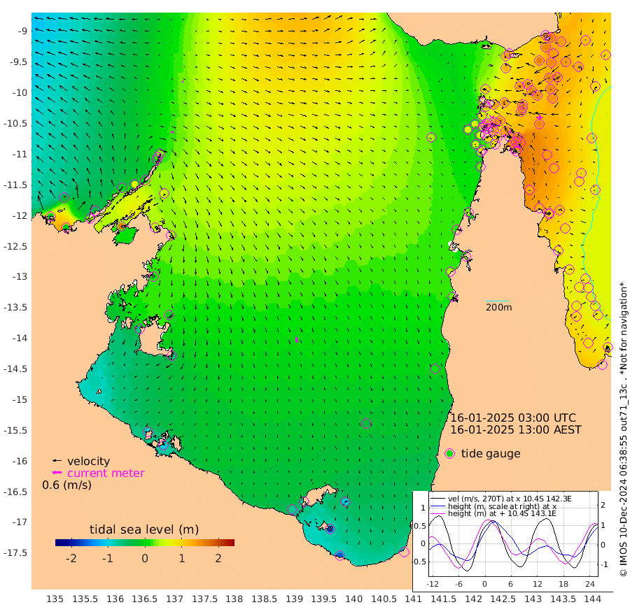 18cm/s 113T +3cm/s rms + 7cm/s -42T. ARA-GOC87 57m 35cm/s 166T +3cm/s rms + 2cm/s -2T. ARA-GOC87 60m 6cm/s 103T +2cm/s rms + 3cm/s 61T. ARA-GOC87 47m 159cm Daru 159cm Bobo Island 93cm Meer Island Barge 117cm Bramble Cay 142cm Unnamed Cay 157cm Pearce Cay 140cm Stephens Island 136cm Merrie England Shoals 155cm Mutacomal Reef 131cm Darnley Island Barge 104cm East Cay 145cm Yorke Island Barge 152cm Rennel Island 153cm Aureed Island 153cm Dungeness Reef 146cm Zagai Island 147cm Yam Island 135cm Dauan Island 127cm Saibai Island 124cm Phipi Reef 160cm Warrior Reef - West 104cm Mabuiag Island Barge 145cm Half Way Island 155cm Coconut Island 157cm Dugong Islet 152cm Poll Island 149cm Kirkcaldie Reef 146cm Suarji Island 147cm Sue Islet 94cm Hawkesbury Island 138cm Alert Patches 145cm Twin Island 86cm Badu Island 145cm St Pauls (Moa Island) 106cm Kubin (Moa Island) 123cm Ince Point 111cm Thursday Island 113cm Nardana Patches 102cm Turtle Head 87cm Round Island 77cm Goods Island 55cm Booby Island 62cm White Rocks Area 38cm Carpentaria 127cm Papou Point 75cm Bampfield Head 40cm Crab Island 65cm Red Wallis Island 98cm Packe Island 167cm Harrington Reef 87cm Herald Camp 36cm Sharp Point 88cm Red Island Point 112cm Possession Island 136cm Alpha Rock 156cm Frederick Point 161cm Wyborn Reef Light 163cm Tetley Island 100cm Triangle Reef 165cm Turtle Head Island 97cm Maclennan Cay 68cm Raine Island 139cm Mcsweeny Reef 126cm Collette Reef 91cm Shadwell Reef 131cm Hannibal Island 124cm Round Point 27cm Vrilya Point 107cm Cape Grenville 105cm Hicks Island 114cm Sir Charles Hardy Island 34cm Harvey Island 92cm Kay Reef 82cm Rocky Island 79cm Chapman Island 76cm Ham Reef 80cm Jubilee Reef 76cm Night Island 78cm Unnamed Reef No. 3 82cm Morris Island 72cm 1st 3 Mile Opening 81cm Creech Reef 93cm Fife Island 84cm Eden Reef 80cm Stanley Island 91cm Normanby River -20cm Yabooma Island -10cm Hutchison River -32cm Elcho Island -36cm North West Crocodile Island 34cm Cape Wessel -4cm Stevens Island 65cm Guluwuru Island -12cm Hopeful Bay 14cm Auster Point 18cm Two Island Bay 37cm Cadell Strait 159cm Mallison Island 46cm Melville Bay (Gove Harbour) 57cm Truant Island 38cm Cape Arnhem 0cm Cape Grey -13cm Hawk Island -68cm Milner Bay (Groote Eylandt) -65cm Cape Beatrice -96cm West Island -102cm Centre Island -78cm Mornington Island -73cm West Wellesley Islands -101cm Bountiful Island -161cm Albert River Mouth -180cm Sweers Island -145cm Karumba -32cm Nassau River Offshore 14cm Christmas Creek 23cm Archer River 41cm Boyd Point 33cm Weipa (Humbug Point) 18cm Pennefather River 35cm Cullen Point