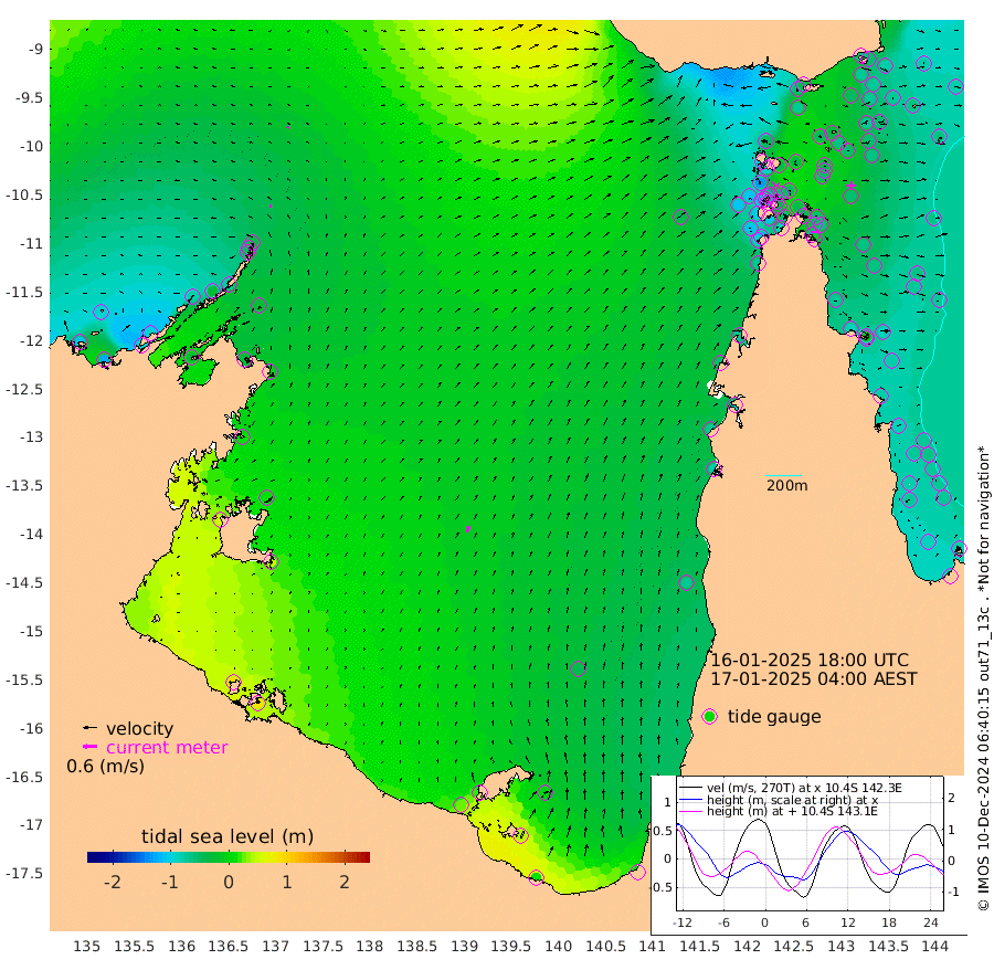 13cm/s 3T +3cm/s rms + 7cm/s -42T. ARA-GOC87 57m 28cm/s 17T +3cm/s rms + 2cm/s -2T. ARA-GOC87 60m 10cm/s 22T +2cm/s rms + 3cm/s 61T. ARA-GOC87 47m -61cm Daru -59cm Bobo Island -66cm Meer Island Barge -80cm Bramble Cay -74cm Unnamed Cay -74cm Pearce Cay -69cm Stephens Island -78cm Merrie England Shoals -72cm Mutacomal Reef -63cm Darnley Island Barge -78cm East Cay -56cm Yorke Island Barge -68cm Rennel Island -54cm Aureed Island -61cm Dungeness Reef -32cm Zagai Island -47cm Yam Island -56cm Dauan Island -41cm Saibai Island -70cm Phipi Reef -50cm Warrior Reef - West -46cm Mabuiag Island Barge -60cm Half Way Island -54cm Coconut Island -59cm Dugong Islet -49cm Poll Island -55cm Kirkcaldie Reef -37cm Suarji Island -39cm Sue Islet -130cm Hawkesbury Island -53cm Alert Patches -49cm Twin Island -108cm Badu Island -39cm St Pauls (Moa Island) -95cm Kubin (Moa Island) -58cm Ince Point -65cm Thursday Island -63cm Nardana Patches -93cm Turtle Head -97cm Round Island -117cm Goods Island -109cm Booby Island -111cm White Rocks Area -39cm Carpentaria -41cm Papou Point -104cm Bampfield Head -91cm Crab Island -107cm Red Wallis Island -111cm Packe Island -52cm Harrington Reef -119cm Herald Camp 0cm Sharp Point -89cm Red Island Point -59cm Possession Island -39cm Alpha Rock -51cm Frederick Point -60cm Wyborn Reef Light -57cm Tetley Island -65cm Triangle Reef -61cm Turtle Head Island -67cm Maclennan Cay -71cm Raine Island -63cm Mcsweeny Reef -67cm Collette Reef -68cm Shadwell Reef -74cm Hannibal Island -87cm Round Point -69cm Vrilya Point -75cm Cape Grenville -75cm Hicks Island -83cm Sir Charles Hardy Island -21cm Harvey Island -81cm Kay Reef -75cm Rocky Island -83cm Chapman Island -72cm Ham Reef -71cm Jubilee Reef -63cm Night Island -75cm Unnamed Reef No. 3 -76cm Morris Island -68cm 1st 3 Mile Opening -71cm Creech Reef -69cm Fife Island -90cm Eden Reef -78cm Stanley Island -85cm Normanby River -109cm Yabooma Island -122cm Hutchison River -94cm Elcho Island -95cm North West Crocodile Island -34cm Cape Wessel -77cm Stevens Island -29cm Guluwuru Island -78cm Hopeful Bay -49cm Auster Point -48cm Two Island Bay -90cm Cadell Strait -24cm Mallison Island -28cm Melville Bay (Gove Harbour) -26cm Truant Island -6cm Cape Arnhem 15cm Cape Grey 14cm Hawk Island 59cm Milner Bay (Groote Eylandt) 48cm Cape Beatrice 86cm West Island 86cm Centre Island 21cm Mornington Island 23cm West Wellesley Islands 0cm Bountiful Island 13cm Albert River Mouth 45cm Sweers Island -2cm Karumba -41cm Nassau River Offshore -70cm Christmas Creek -82cm Archer River -69cm Boyd Point -91cm Weipa (Humbug Point) -55cm Pennefather River -72cm Cullen Point