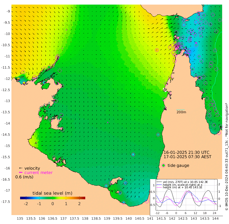 8cm/s -162T +3cm/s rms + 7cm/s -42T. ARA-GOC87 57m 19cm/s 15T +3cm/s rms + 2cm/s -2T. ARA-GOC87 60m 14cm/s 170T +2cm/s rms + 3cm/s 61T. ARA-GOC87 47m -95cm Daru -94cm Bobo Island -34cm Meer Island Barge -53cm Bramble Cay -68cm Unnamed Cay -87cm Pearce Cay -69cm Stephens Island -65cm Merrie England Shoals -84cm Mutacomal Reef -64cm Darnley Island Barge -42cm East Cay -77cm Yorke Island Barge -78cm Rennel Island -89cm Aureed Island -88cm Dungeness Reef -92cm Zagai Island -84cm Yam Island -89cm Dauan Island -81cm Saibai Island -101cm Phipi Reef -111cm Warrior Reef - West -33cm Mabuiag Island Barge -73cm Half Way Island -85cm Coconut Island -80cm Dugong Islet -83cm Poll Island -81cm Kirkcaldie Reef -78cm Suarji Island -80cm Sue Islet 49cm Hawkesbury Island -55cm Alert Patches -62cm Twin Island 24cm Badu Island -67cm St Pauls (Moa Island) 13cm Kubin (Moa Island) -34cm Ince Point -13cm Thursday Island -19cm Nardana Patches 4cm Turtle Head 36cm Round Island 52cm Goods Island 87cm Booby Island 77cm White Rocks Area 105cm Carpentaria -49cm Papou Point 105cm Bampfield Head 67cm Crab Island 70cm Red Wallis Island 22cm Packe Island -87cm Harrington Reef 57cm Herald Camp -28cm Sharp Point -2cm Red Island Point -18cm Possession Island -56cm Alpha Rock -75cm Frederick Point -79cm Wyborn Reef Light -80cm Tetley Island -40cm Triangle Reef -68cm Turtle Head Island -33cm Maclennan Cay -16cm Raine Island -70cm Mcsweeny Reef -62cm Collette Reef -35cm Shadwell Reef -64cm Hannibal Island -54cm Round Point 75cm Vrilya Point -41cm Cape Grenville -41cm Hicks Island -39cm Sir Charles Hardy Island -14cm Harvey Island -28cm Kay Reef -25cm Rocky Island -23cm Chapman Island -18cm Ham Reef -22cm Jubilee Reef -26cm Night Island -21cm Unnamed Reef No. 3 -23cm Morris Island -11cm 1st 3 Mile Opening -21cm Creech Reef -41cm Fife Island -20cm Eden Reef -19cm Stanley Island -27cm Normanby River 78cm Yabooma Island 75cm Hutchison River 78cm Elcho Island 71cm North West Crocodile Island 32cm Cape Wessel 52cm Stevens Island -6cm Guluwuru Island 53cm Hopeful Bay 45cm Auster Point 45cm Two Island Bay 13cm Cadell Strait -105cm Mallison Island -4cm Melville Bay (Gove Harbour) 1cm Truant Island -11cm Cape Arnhem -11cm Cape Grey -20cm Hawk Island -8cm Milner Bay (Groote Eylandt) -20cm Cape Beatrice -25cm West Island -20cm Centre Island -92cm Mornington Island -88cm West Wellesley Islands -102cm Bountiful Island -103cm Albert River Mouth -103cm Sweers Island -114cm Karumba -95cm Nassau River Offshore -71cm Christmas Creek -11cm Archer River 13cm Boyd Point 16cm Weipa (Humbug Point) 34cm Pennefather River 57cm Cullen Point