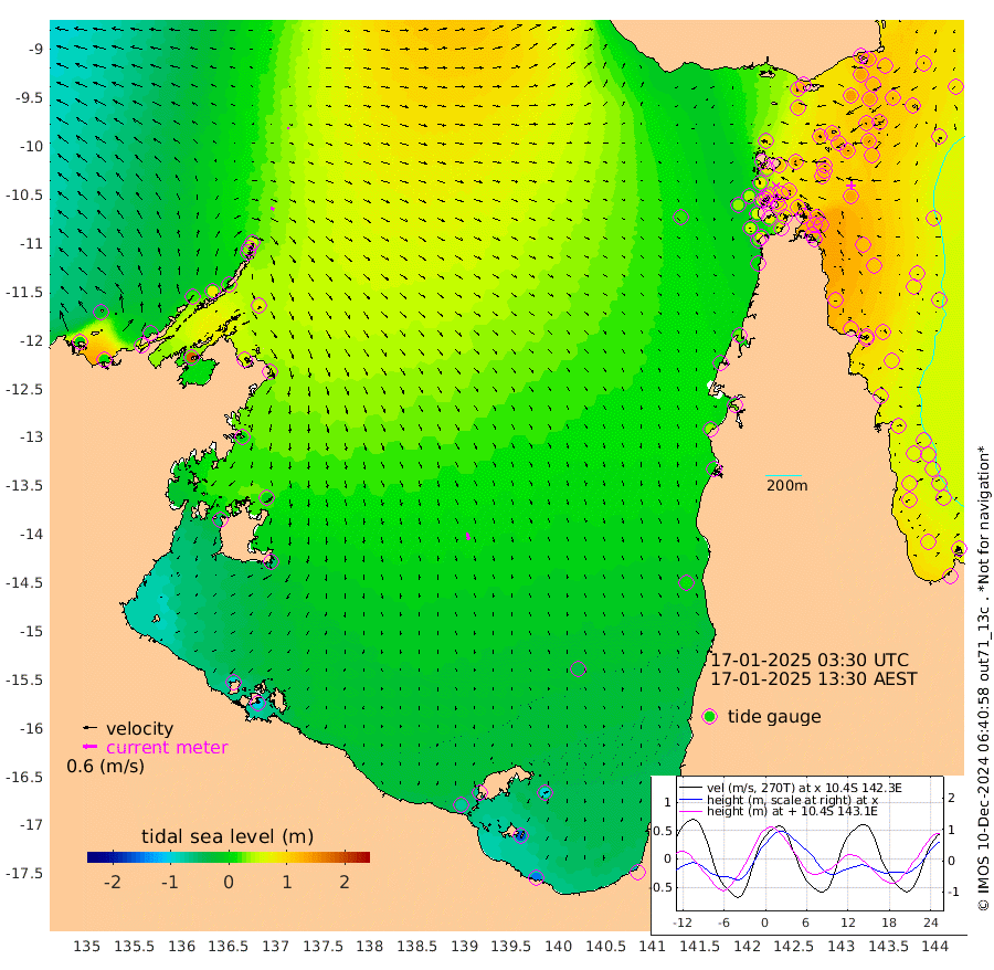 16cm/s 106T +3cm/s rms + 7cm/s -42T. ARA-GOC87 57m 31cm/s 167T +3cm/s rms + 2cm/s -2T. ARA-GOC87 60m 7cm/s 81T +2cm/s rms + 3cm/s 61T. ARA-GOC87 47m 134cm Daru 134cm Bobo Island 78cm Meer Island Barge 98cm Bramble Cay 118cm Unnamed Cay 130cm Pearce Cay 116cm Stephens Island 112cm Merrie England Shoals 130cm Mutacomal Reef 110cm Darnley Island Barge 88cm East Cay 121cm Yorke Island Barge 126cm Rennel Island 128cm Aureed Island 126cm Dungeness Reef 127cm Zagai Island 127cm Yam Island 123cm Dauan Island 118cm Saibai Island 107cm Phipi Reef 141cm Warrior Reef - West 89cm Mabuiag Island Barge 118cm Half Way Island 130cm Coconut Island 129cm Dugong Islet 127cm Poll Island 122cm Kirkcaldie Reef 121cm Suarji Island 124cm Sue Islet 75cm Hawkesbury Island 111cm Alert Patches 120cm Twin Island 68cm Badu Island 120cm St Pauls (Moa Island) 87cm Kubin (Moa Island) 100cm Ince Point 88cm Thursday Island 91cm Nardana Patches 81cm Turtle Head 72cm Round Island 58cm Goods Island 37cm Booby Island 42cm White Rocks Area 22cm Carpentaria 104cm Papou Point 59cm Bampfield Head 24cm Crab Island 48cm Red Wallis Island 79cm Packe Island 136cm Harrington Reef 73cm Herald Camp 30cm Sharp Point 68cm Red Island Point 90cm Possession Island 116cm Alpha Rock 130cm Frederick Point 137cm Wyborn Reef Light 139cm Tetley Island 86cm Triangle Reef 133cm Turtle Head Island 81cm Maclennan Cay 57cm Raine Island 116cm Mcsweeny Reef 105cm Collette Reef 77cm Shadwell Reef 109cm Hannibal Island 104cm Round Point 10cm Vrilya Point 89cm Cape Grenville 88cm Hicks Island 99cm Sir Charles Hardy Island 28cm Harvey Island 77cm Kay Reef 69cm Rocky Island 69cm Chapman Island 66cm Ham Reef 67cm Jubilee Reef 64cm Night Island 67cm Unnamed Reef No. 3 69cm Morris Island 58cm 1st 3 Mile Opening 67cm Creech Reef 81cm Fife Island 70cm Eden Reef 66cm Stanley Island 76cm Normanby River 0cm Yabooma Island 10cm Hutchison River -12cm Elcho Island -16cm North West Crocodile Island 48cm Cape Wessel 16cm Stevens Island 75cm Guluwuru Island 8cm Hopeful Bay 27cm Auster Point 33cm Two Island Bay 53cm Cadell Strait 184cm Mallison Island 57cm Melville Bay (Gove Harbour) 68cm Truant Island 45cm Cape Arnhem 5cm Cape Grey -7cm Hawk Island -60cm Milner Bay (Groote Eylandt) -59cm Cape Beatrice -93cm West Island -99cm Centre Island -73cm Mornington Island -70cm West Wellesley Islands -92cm Bountiful Island -144cm Albert River Mouth -161cm Sweers Island -130cm Karumba -32cm Nassau River Offshore 8cm Christmas Creek 13cm Archer River 31cm Boyd Point 24cm Weipa (Humbug Point) 4cm Pennefather River 24cm Cullen Point